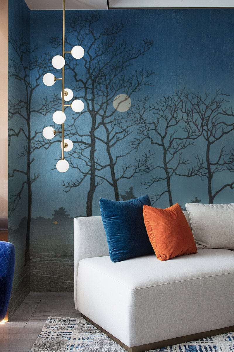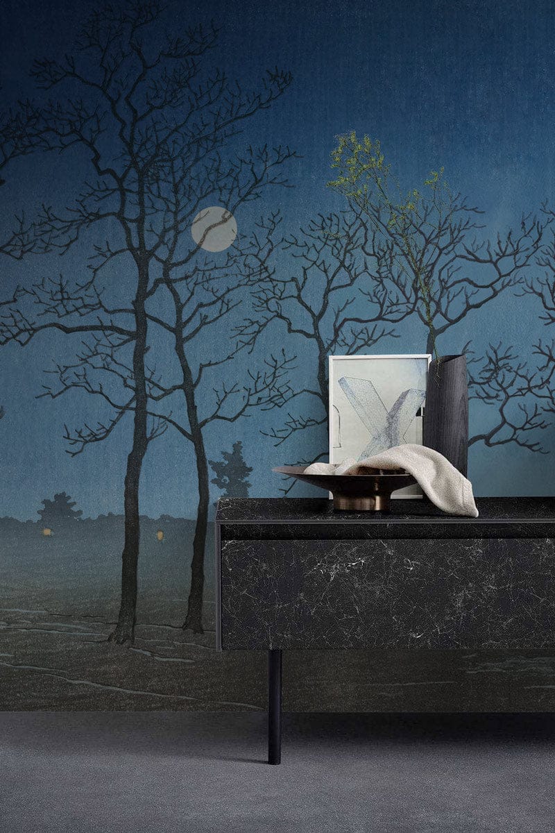 Midnight Whisper Woods Mural Wallpaper draws you into a serene woodland under the moonlit sky. Its intricate depiction of silhouetted trees against a twilight gradient evokes an atmosphere of tranquility and elegance. Ideal for creating a dreamy sanctuary, this mural adds depth and sophistication to both contemporary and traditional spaces, inviting a sense of nocturnal wonder into your home.