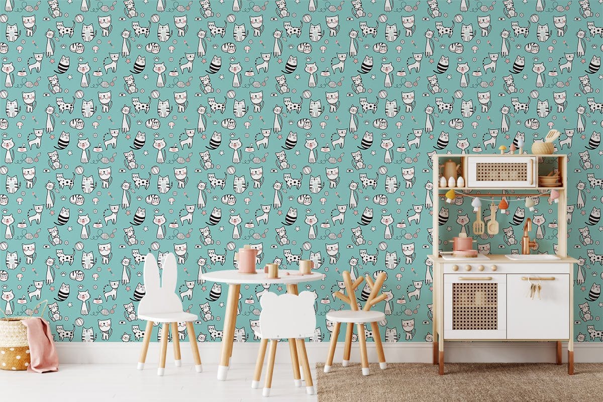Delight in the whimsical charm of our Mini Cartoon Cats Wallpaper Mural, featuring an intricate array of playful feline figures that captivate the imagination. The delicate, hand-drawn illustrations bring a touch of artistry to any room, while the subtle yet lively patterns evoke a sense of joy and creativity. Perfectly suited for those seeking an element of sophistication with a playful twist, this wallpaper adds an inviting layer of personality to a variety of interiors.