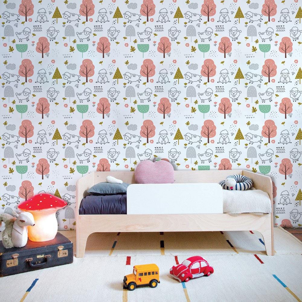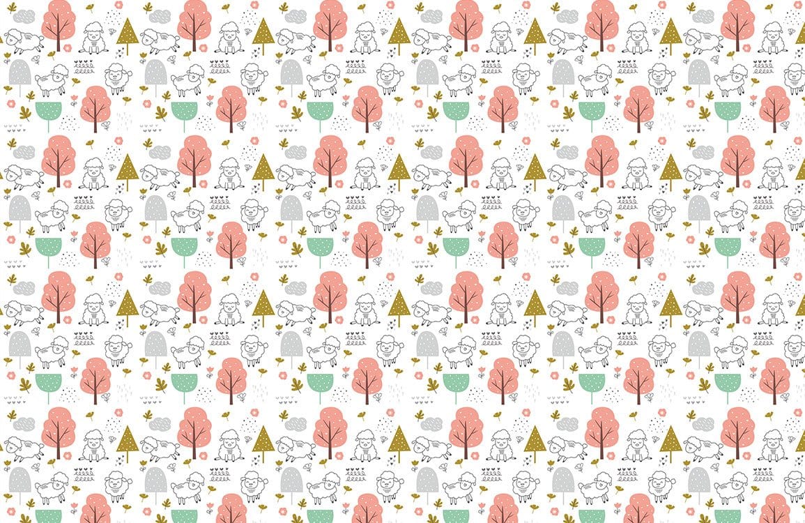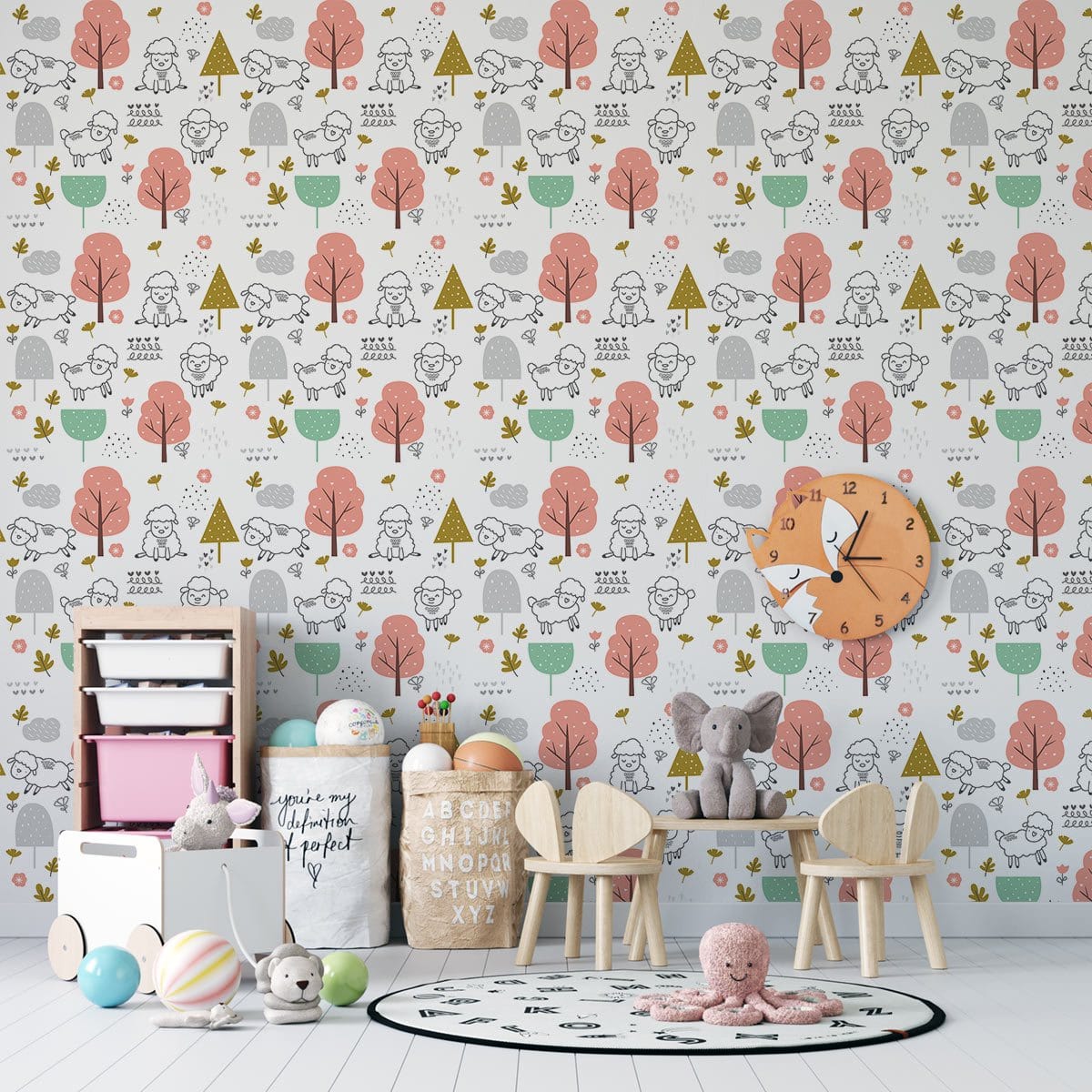 Inspire your children with our cartoon sheep wallpaper mural. This Wallpaper is designed in repeat patterns of adorable sheep with trees, leaves & flower print, which is heart-melting and can bring the interior space a fresh appeal. Perfect wallpaper for kids room and baby nursery to revamp your rooms.