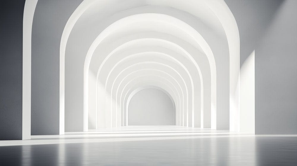 A serene corridor of repeating arches creates depth, rhythm, and a gallery-like calm. Soft white and warm grey tones reflect light beautifully, making spaces feel larger and cleaner. Perfect for modern interiors, this mural adds architectural elegance without visual clutter—ideal for a refined, airy statement wall.