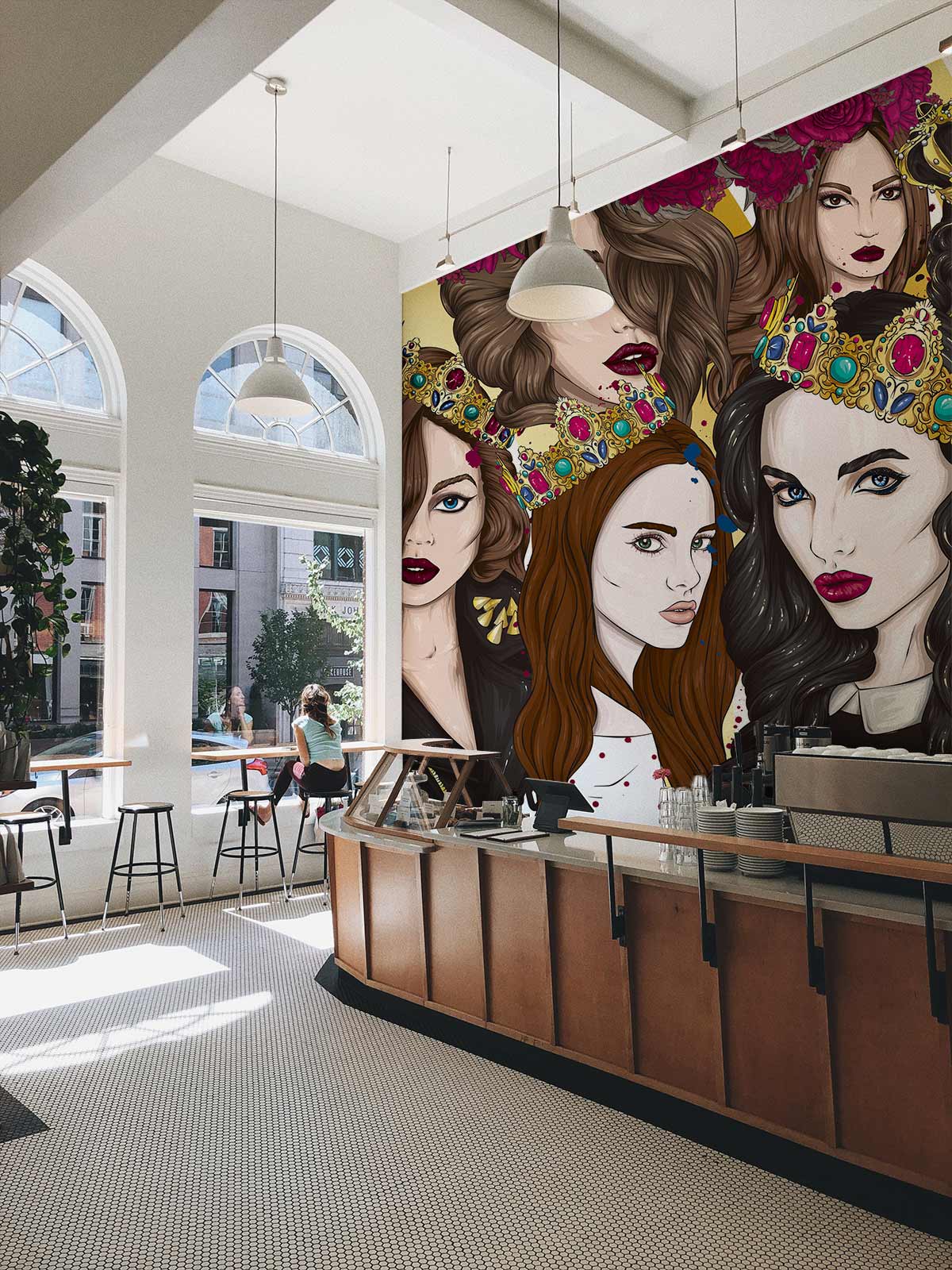 The Miss World Wallpaper Mural exudes a captivating elegance with its intricate portrayal of fashion-forward figures adorned in regal crowns and vibrant floral embellishments. The mural's artistic composition injects personality and bold style into any room, seamlessly integrating with both contemporary and eclectic interiors.