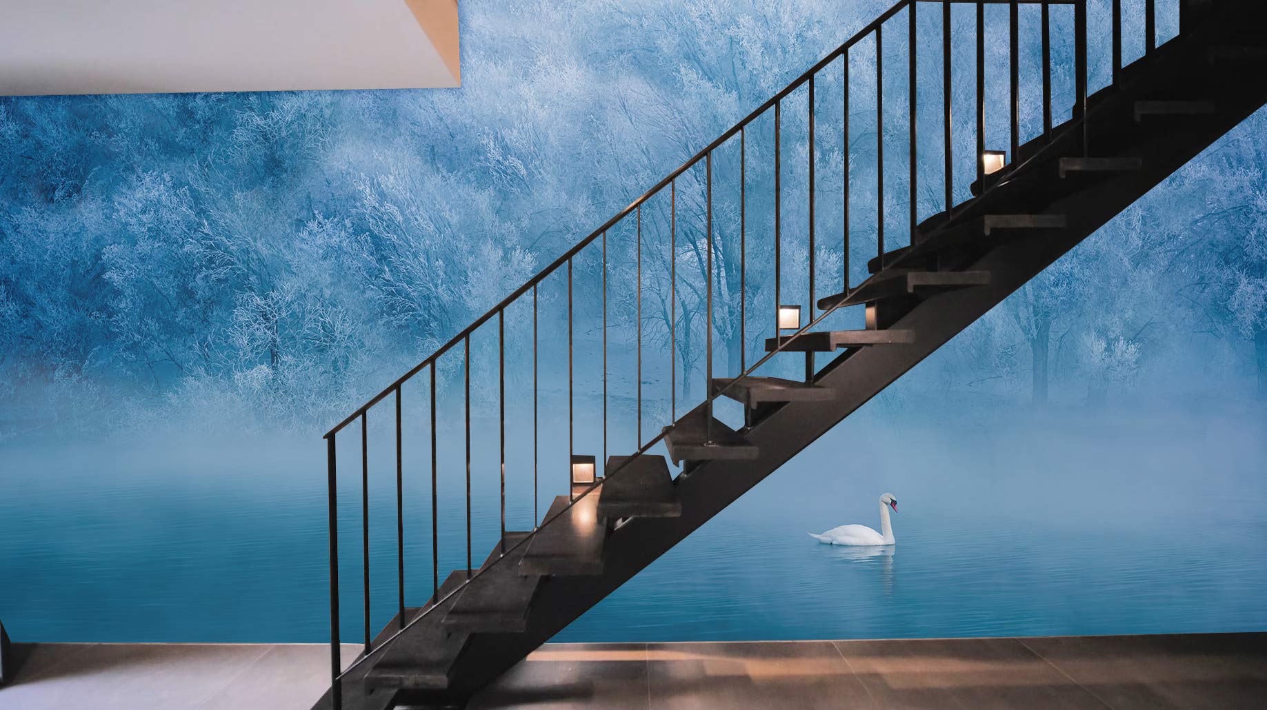 If you want a calming nature scene for your bedroom, then this blue swan lake wallpaper mural is perfect. If you struggle to sleep at night or get up in the morning, this misty forest & lake view will make you feel comfortable and relaxed at night and early mornings! The added beauty of nature wallpapers is that, often, they will go with your modern home decors.