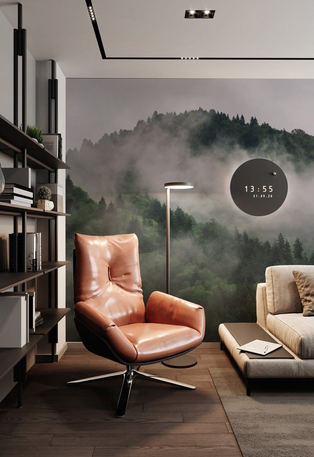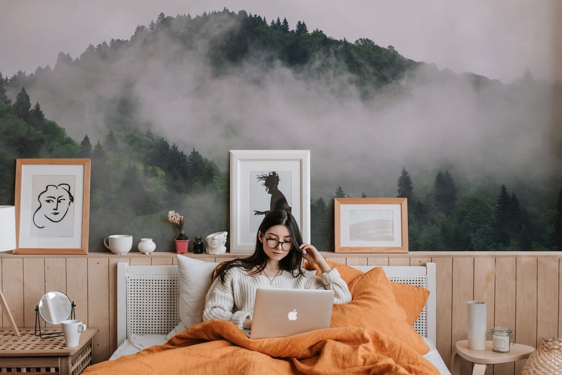 Wake up and step into the serenity and peace of nature in this tree forest wallpaper mural. Full of fresh green trees, this wallpaper gives it a foggy, mystic and airy touch to your interiors. Why not use it in your bedroom, living room or dining hall for a fresh and natural feeling.