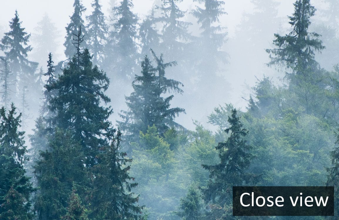 Wake up and step into the serenity and peace of nature in this pine tree forest wallpaper mural. Created in greeny blue tone, this pine tree wall mural gives it a foggy, mystic and airy touch to your interiors. Why not use it in your bedroom, living room or dining hall for a fresh and natural feeling.