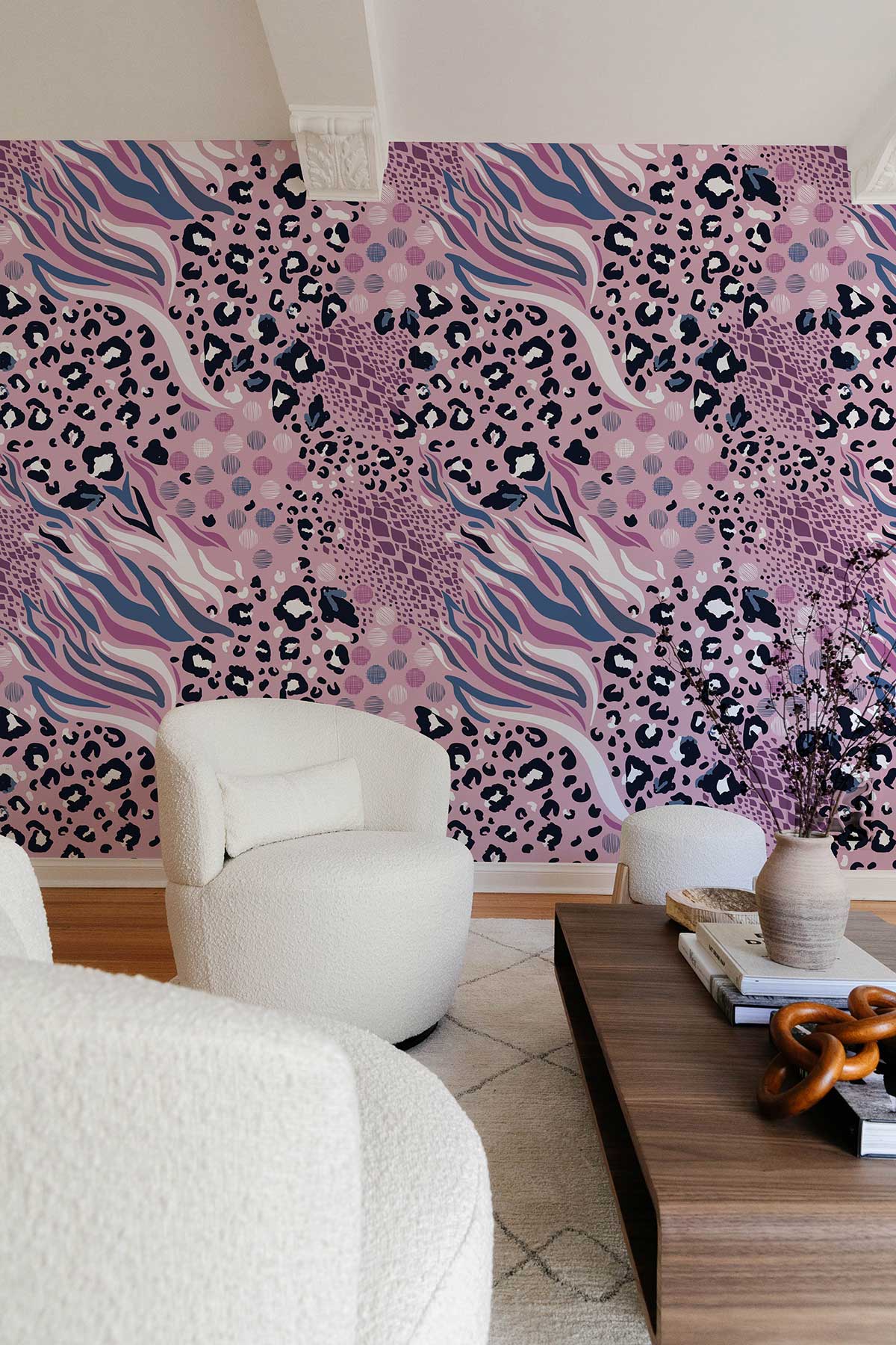 Bring the season's warmth indoors with this Mixed Abstract Fur Wallpaper Mural. This beautiful animal skin wall mural includes a mixture of abstract furs patterns to create an eye-catching focal point in your home decor. The design features gorgeous conceptual fur material in the backdrop and colourful lines that resemble fur. This abstract wallpaper mural will provide a striking look to your space with its stunning purple colour palette you are sure to love!
