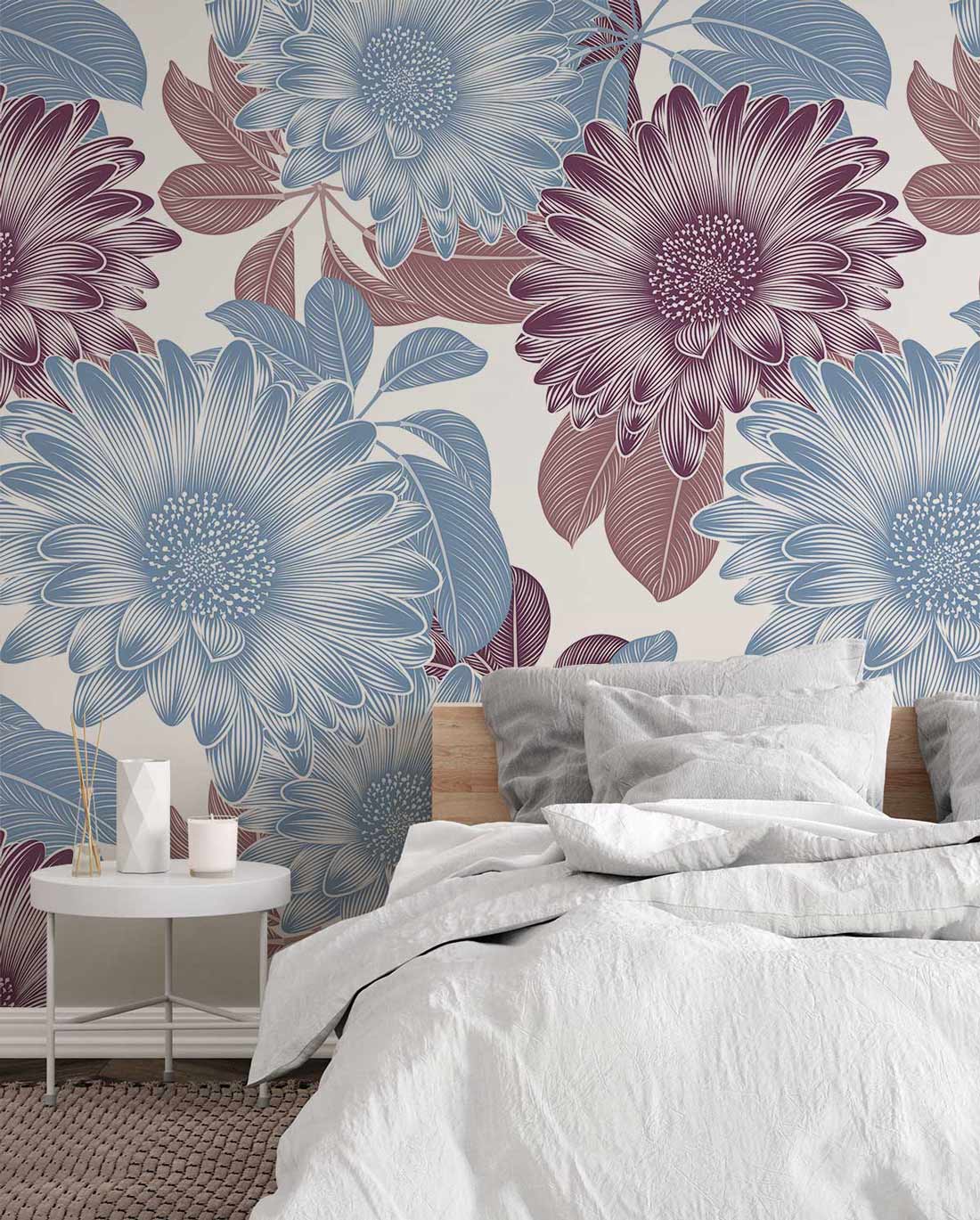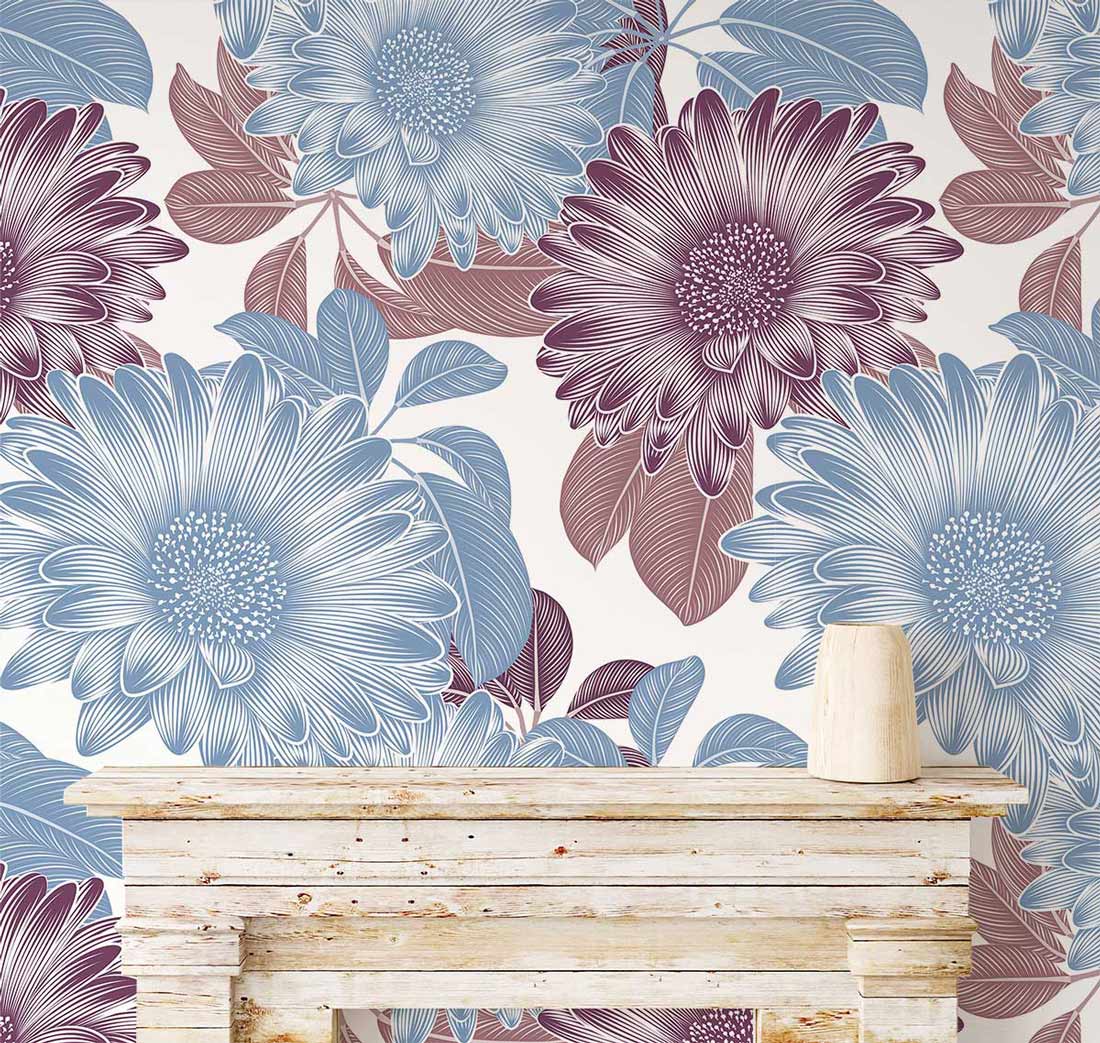 With its striking blue and purple colour palette, this Mixture Daisy Wallpaper Mural makes a subtle touch of drama to be utilized in both living spaces and bedrooms. Printed with an intricate hand-drawn pattern of colourful daisies and leaves, our flower wallpaper can bring nature into your home in no time. Ideal for any room, its subtle tones, and delicate floral patterns create an elegant and relaxed feel. Featuring white lines on a pink and blue floral layout, this boho-chic wallpaper is sure to become your new favorite accent in your living space.