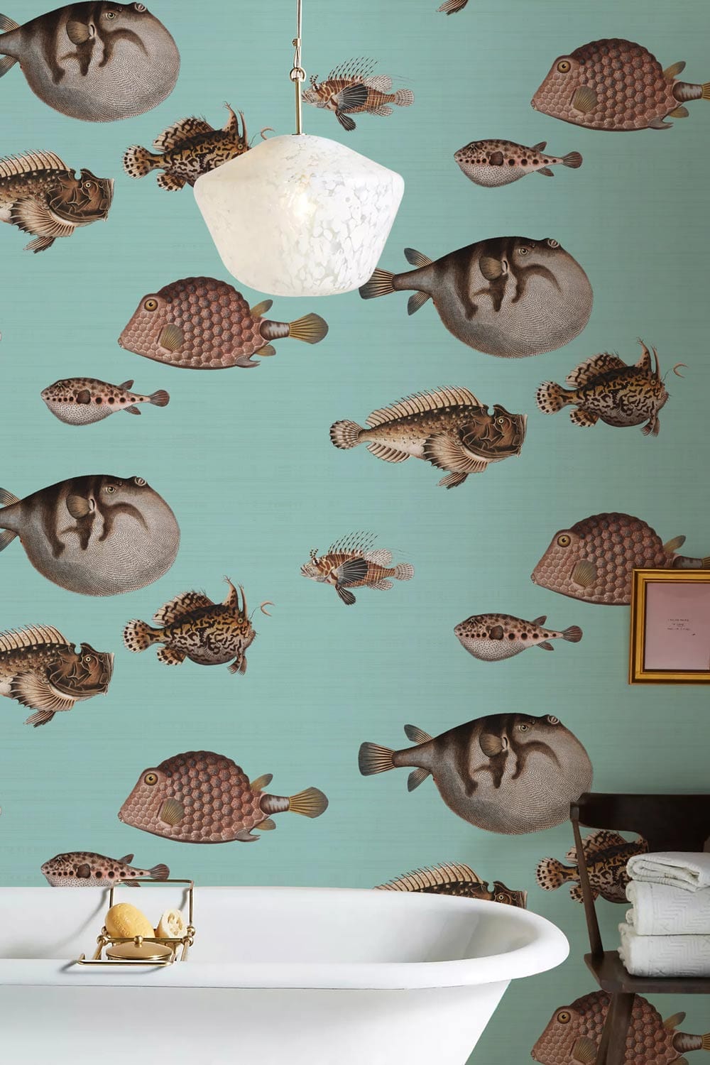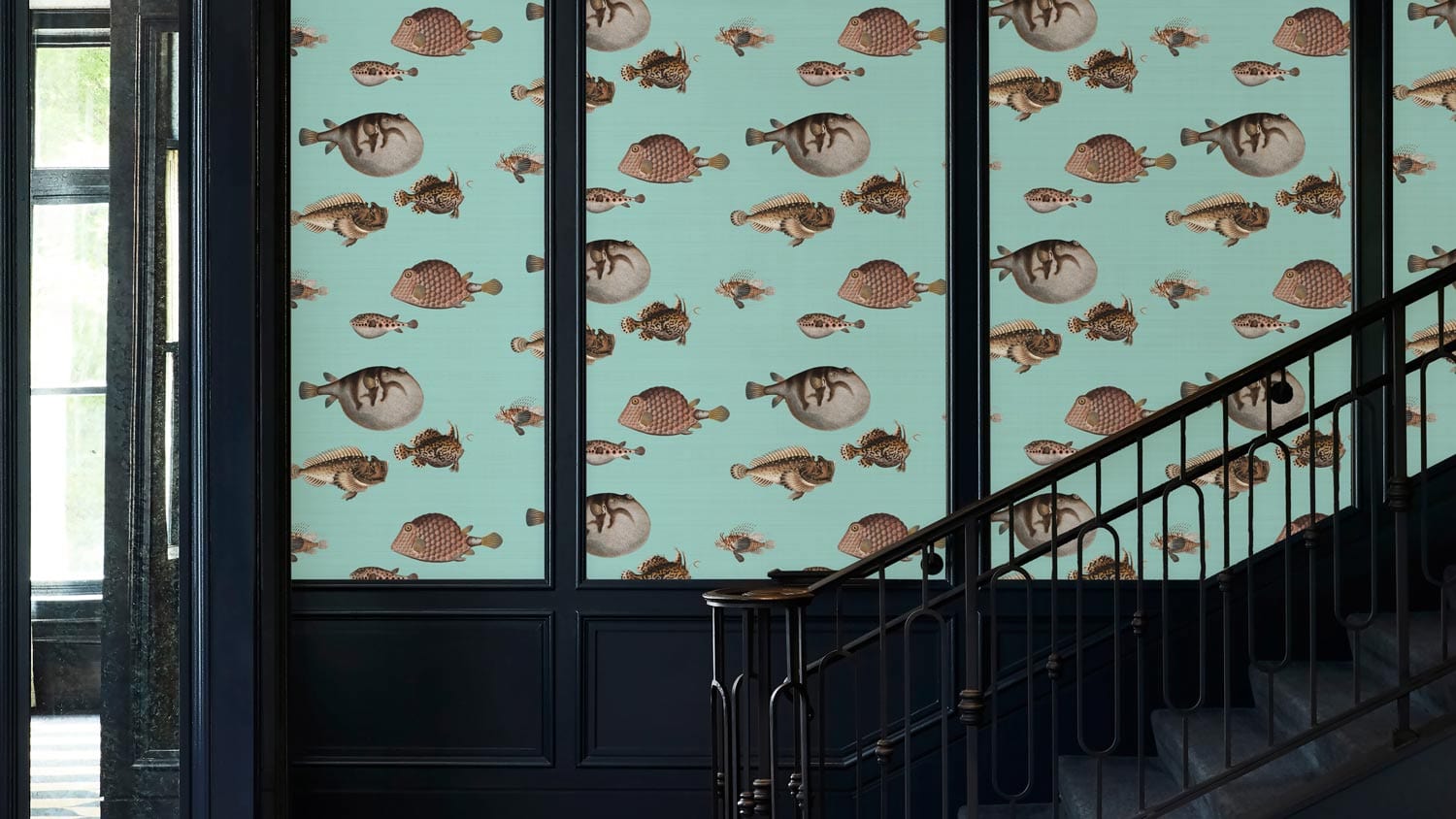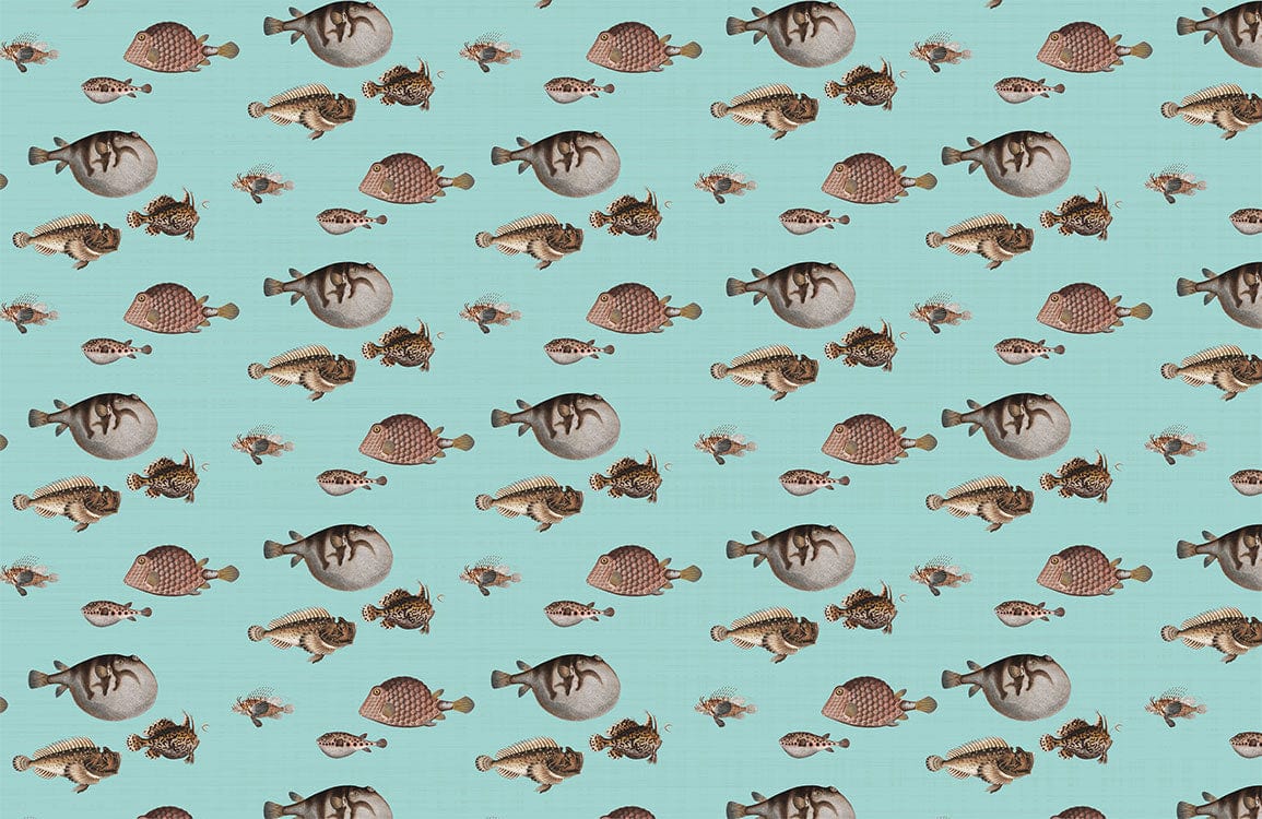 Dive into an aquatic dreamscape with the Mixture Fish Wallpaper Mural. Featuring an exquisite array of intricately illustrated fish set against a serene, seafoam backdrop, this mural offers an artistic tapestry that evokes a sense of underwater tranquillity. Its tasteful design bridges a timeless aesthetic with a modern flair, making it an enchanting addition to diverse interiors.