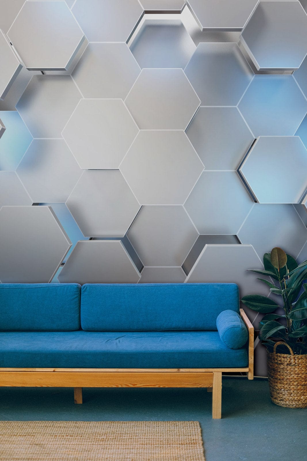 The Modern Hexagonal Elegance Mural Wallpaper captures the essence of contemporary artistry, featuring a precise geometric pattern of interlocking hexagons. Subtle gradients of soft grey and muted blue blend seamlessly, creating a sophisticated backdrop that exudes understated luxury. Ideal for elevating any modern living space, this mural brings a sense of depth and fluidity, offering a timeless appeal suitable for both intimate and expansive settings.