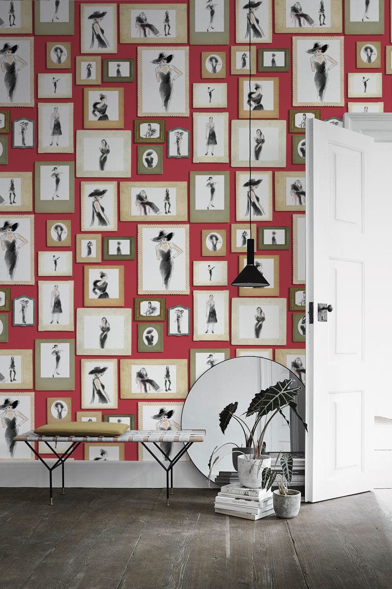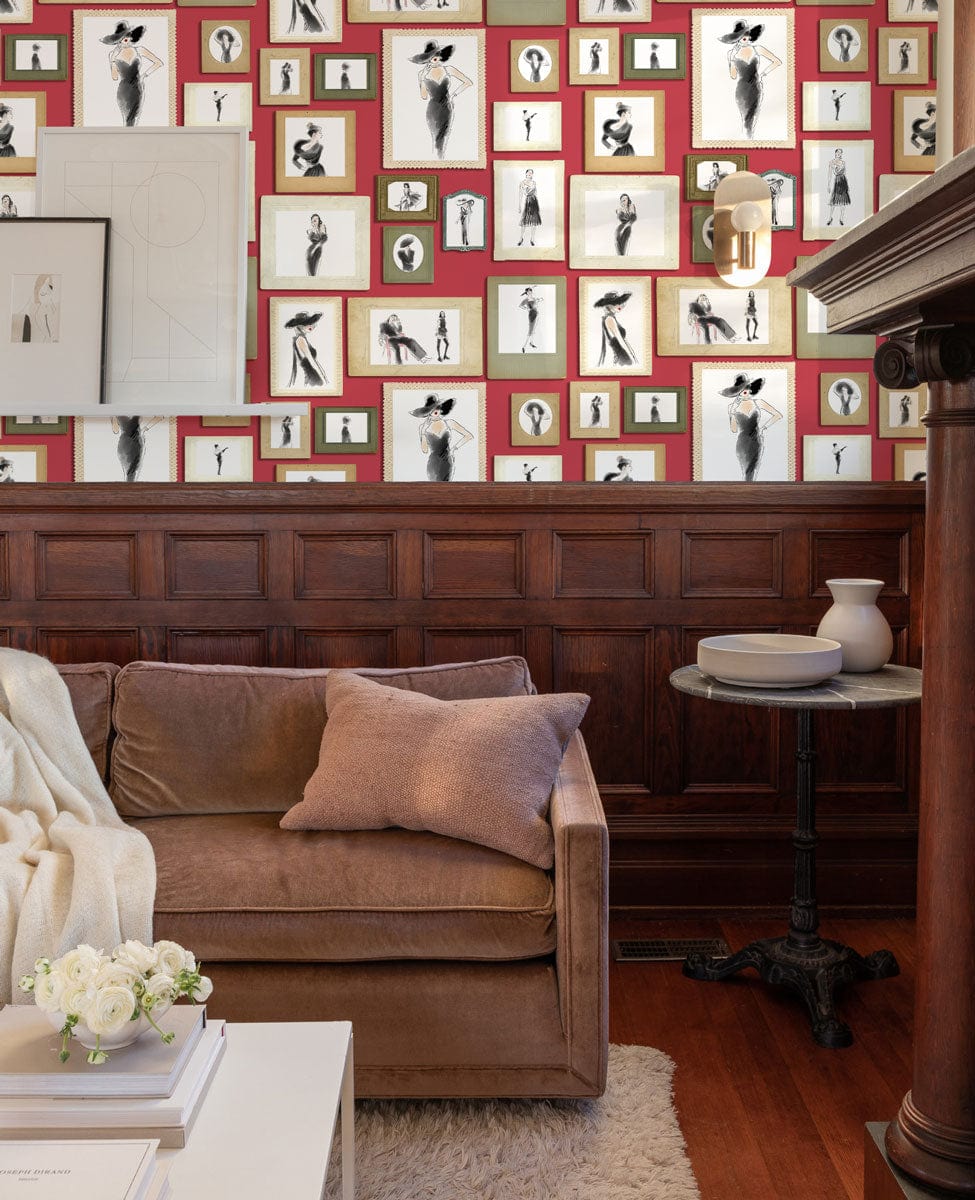 The Modern Lady Wallpaper Mural captures a refined elegance, featuring a collage of graceful figures depicted in dynamic poses. Framed in a palette of rich red and muted mustard, each figure is set against a backdrop of soft whites and greys, offering a striking contrast. This mural introduces a sense of timeless sophistication, seamlessly blending into a range of interior settings, evoking a gallery-like ambience that invites admiration and contemplation.