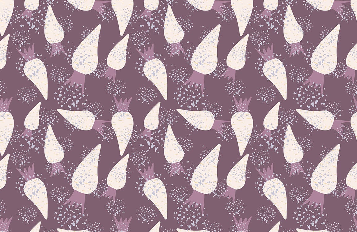 Introduce a charming and artistic flair to your space with the Modern Radish Root Pattern Wallpaper Mural. Its intricate design showcases stylised radish motifs in soft, contemplative shades that blend vintage allure with a contemporary twist. This sophisticated mural invites a serene ambience, making it an exquisite choice for diverse interiors.