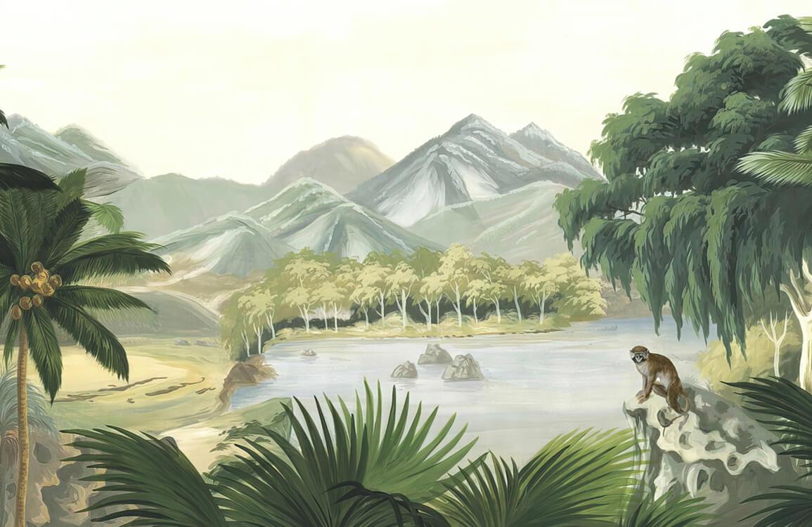 Immerse yourself in the tranquillity of an exotic landscape with the Monkey Forest Wallpaper Mural. This intricately designed piece captures a serene jungle scene, featuring lush greenery and distant mountains, evoking a sense of timeless adventure. Perfectly suited for both modern and traditional interiors, its captivating details and elegant composition provide a refined backdrop to any space.