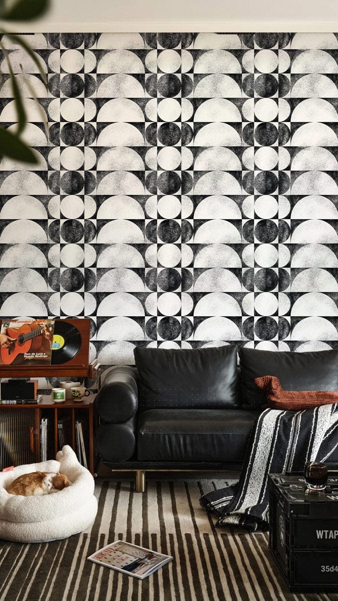 The Monochrome Crescent Mural Wallpaper exudes sophistication with its pattern of interlocking crescents, creating an arresting visual flow across any wall. Its design mirrors the elegance of lunar phases, offering a striking balance of light and shadow. The subtle textures of this mural bring depth and intrigue to interiors, making it a versatile choice for both minimalist and contemporary spaces.