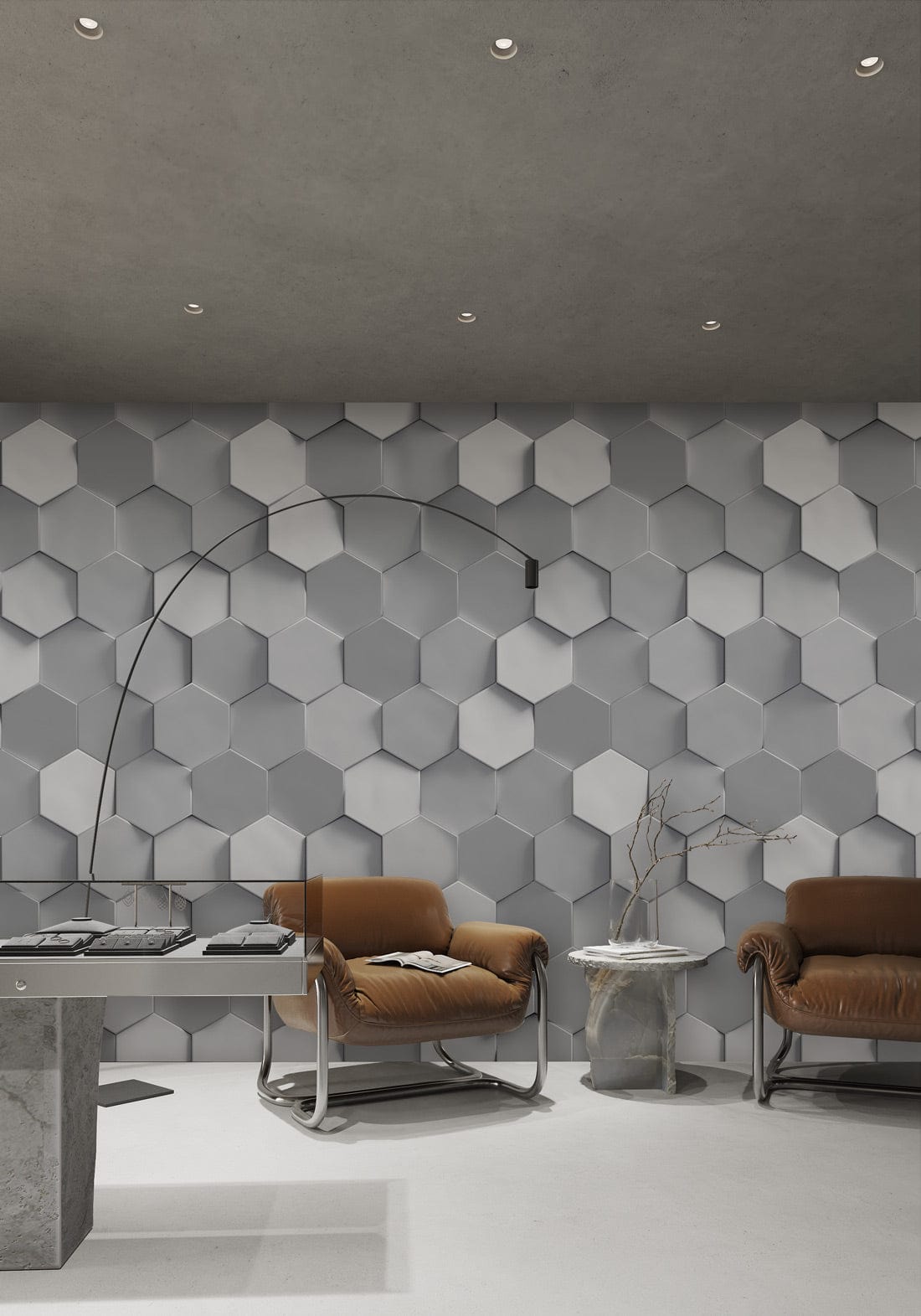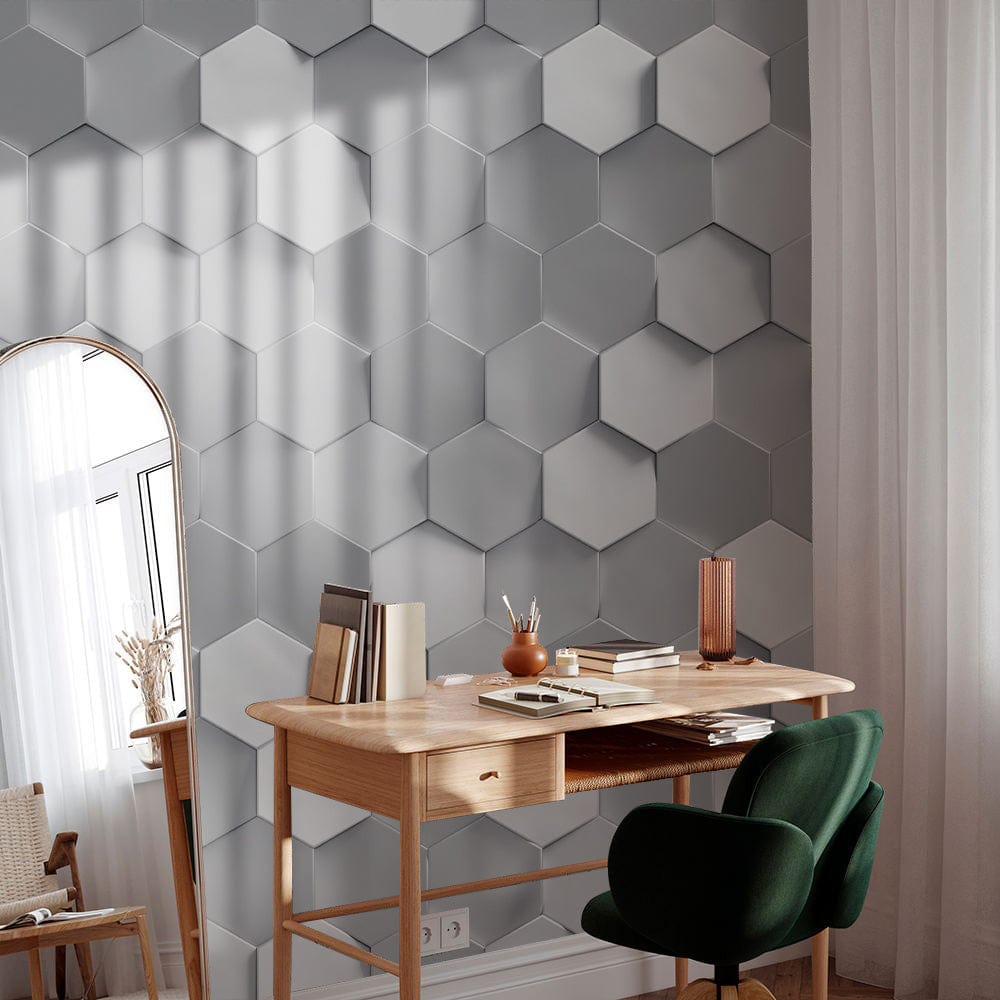 Immerse any space in subtle sophistication with the Monochrome Hexagonal Elegance Mural Wallpaper. Crafted with an intricate blend of geometric precision, this design features a harmonious array of hexagons that create a compelling visual tapestry. Its nuanced shades of grey exude a refined ambience, perfect for cultivating a soothing yet stylish atmosphere. Ideal for diverse interior settings, it seamlessly complements both contemporary and traditional decor schemes.