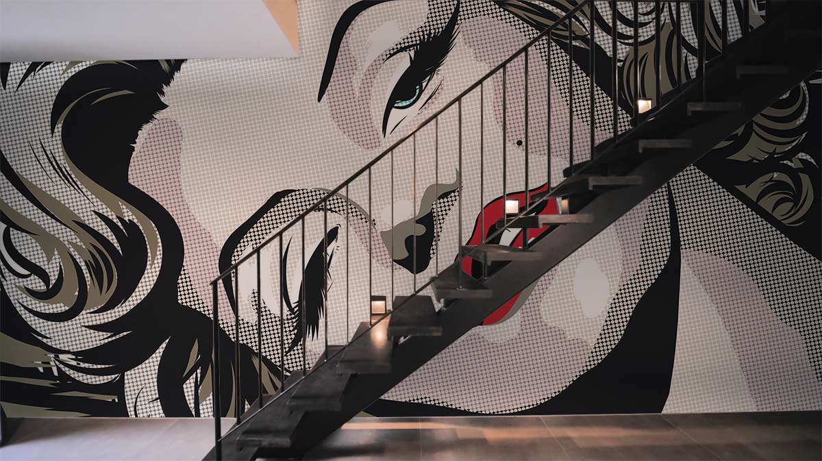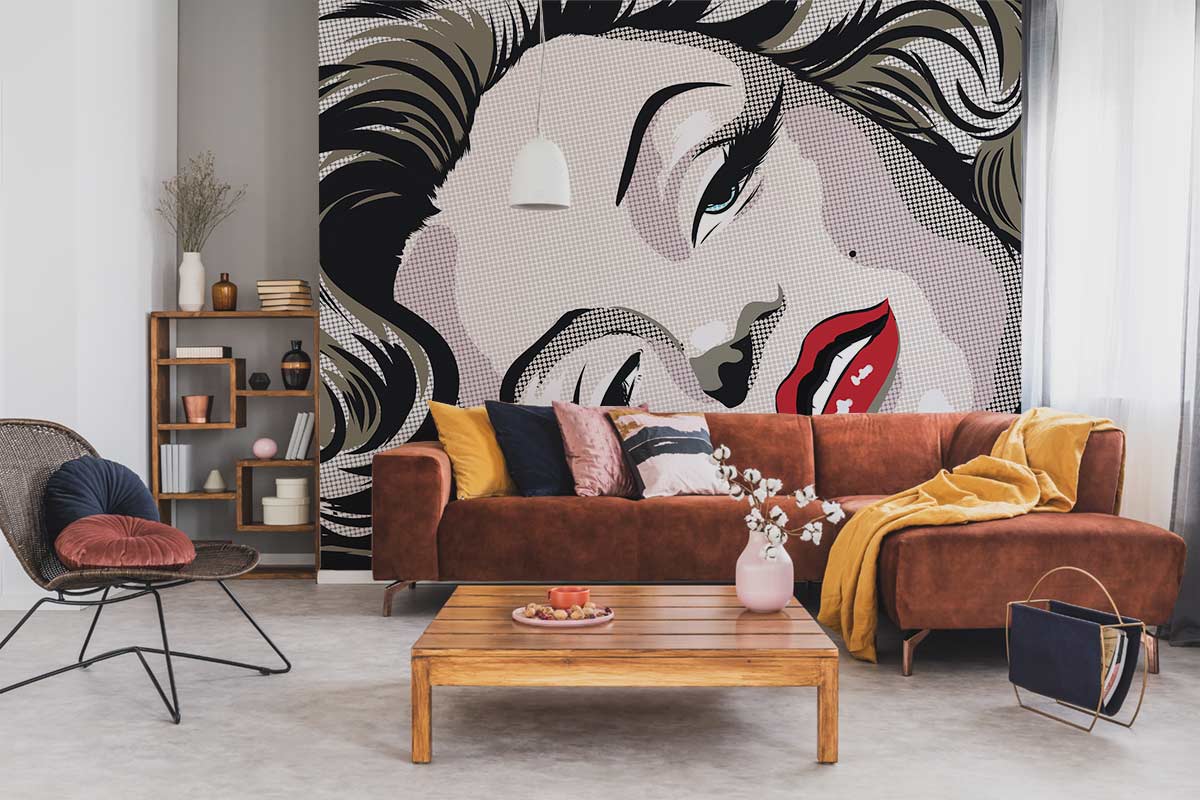 The Monroe Pop Art II Wallpaper Mural presents an iconic visage rendered with precision and flair, capturing the essence of pop art culture. Its intricate detailing and bold lines stand out, weaving a narrative of glamour and allure. Elegant in its monochrome palette punctuated by striking red accents, this mural invites a sophisticated yet playful ambience. Ideal for creating a statement across various settings, this artwork breathes life into spaces with its timeless charm.