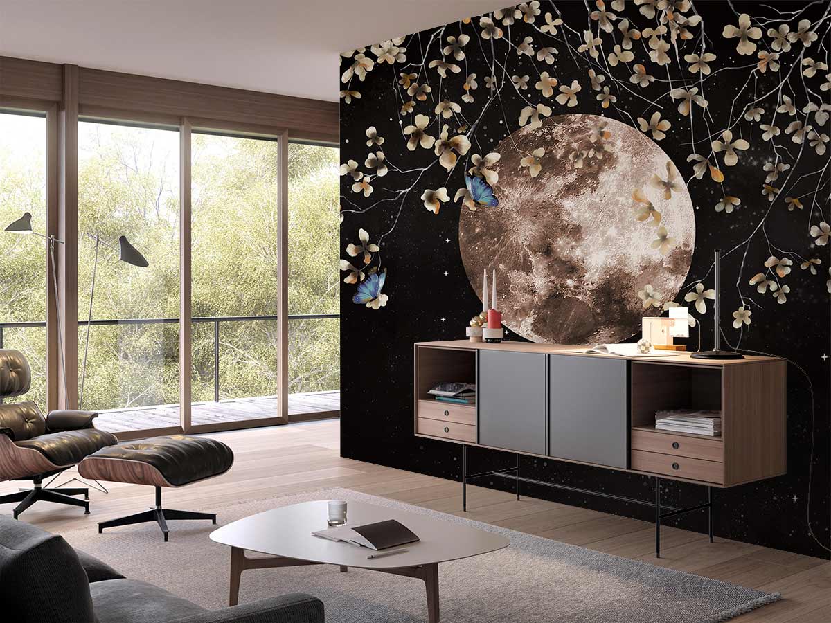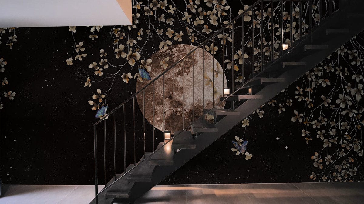 Immerse your space in the enchanting beauty of the Moon Night View ll Wallpaper Mural. This captivating design showcases a resplendent full moon, surrounded by delicate clusters of ivory blossoms and fluttering butterflies against a deep, star-speckled sky. Its evocative imagery invites tranquillity and a sense of wonder, making it a perfect statement piece for varied interior décors.