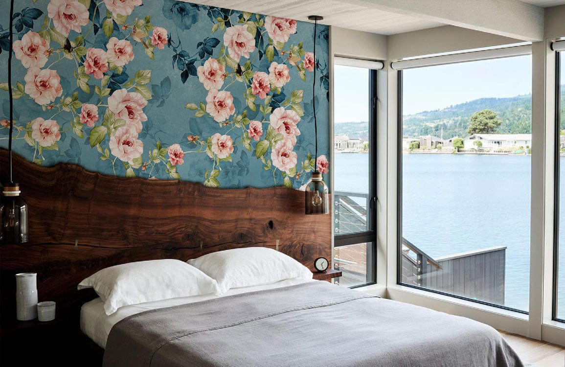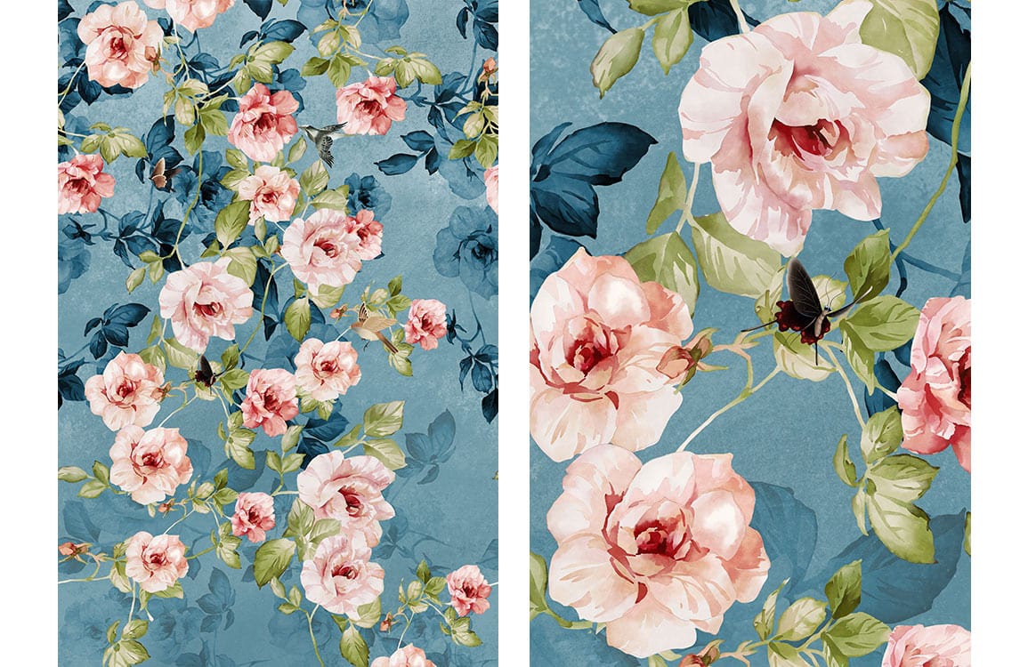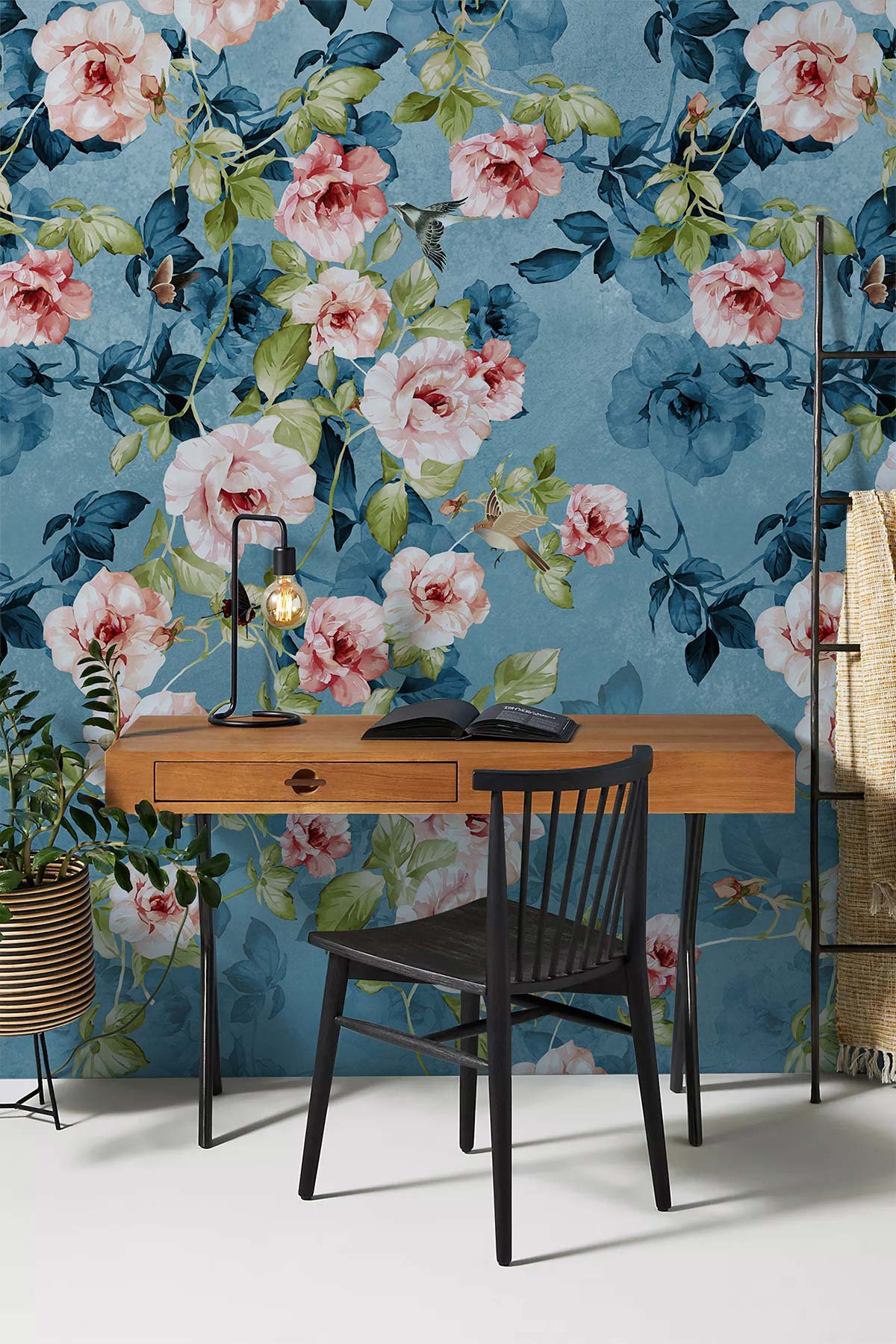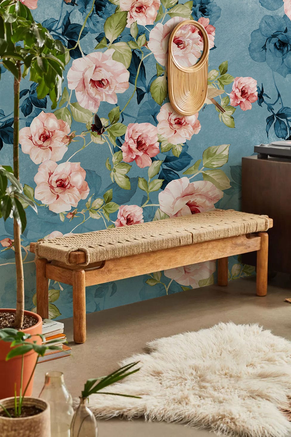 The Moonflowers Vine Wallpaper Mural captures a sense of timeless elegance with its artistic depiction of blooming pink roses intertwined with lush green leaves set against a serene blue backdrop. This captivating design breathes a gentle sophistication into any room, creating a tranquil yet vibrant atmosphere. Ideal for both modern and classic interiors, this mural offers a refined charm that complements a variety of decor styles.