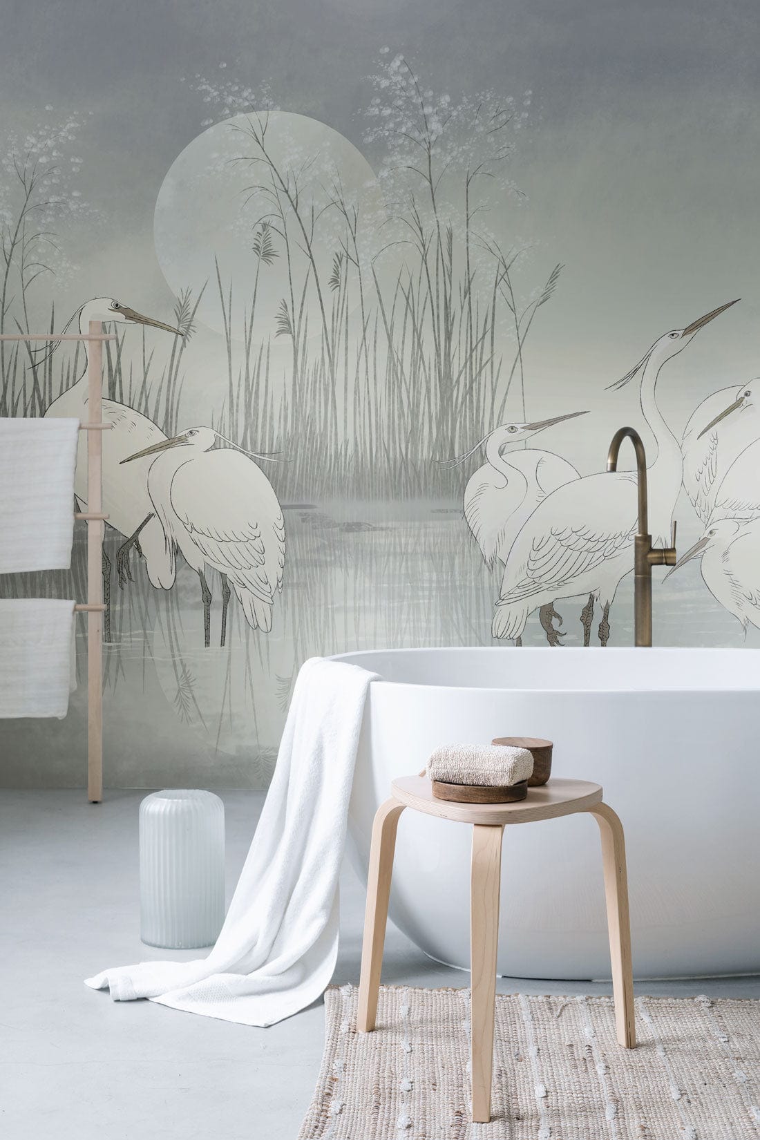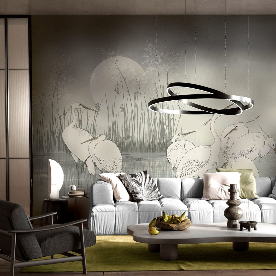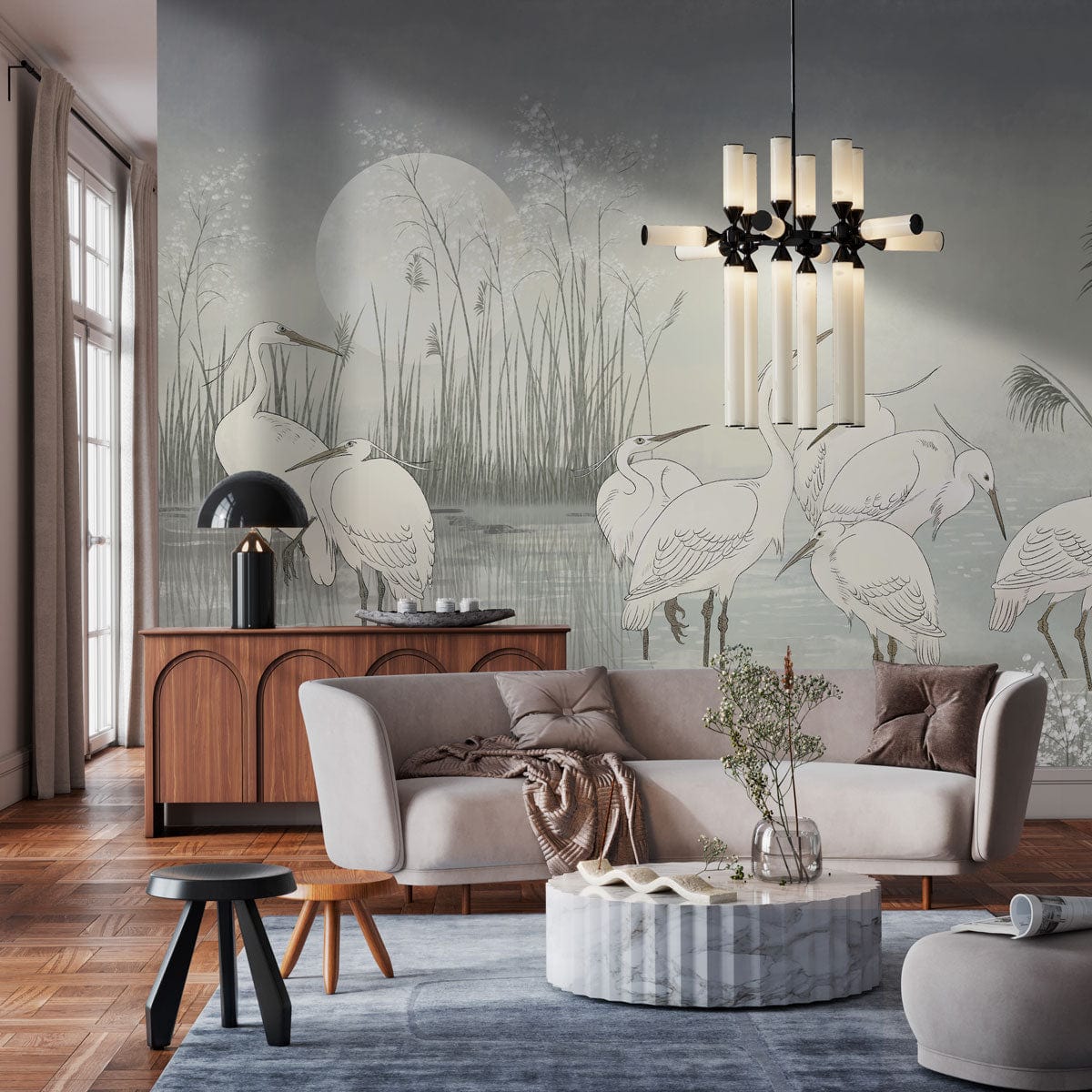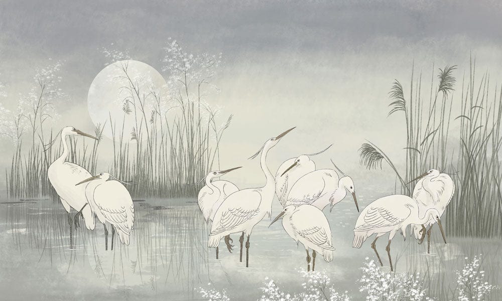 Moonlit Egret Gathering Mural Wallpaper