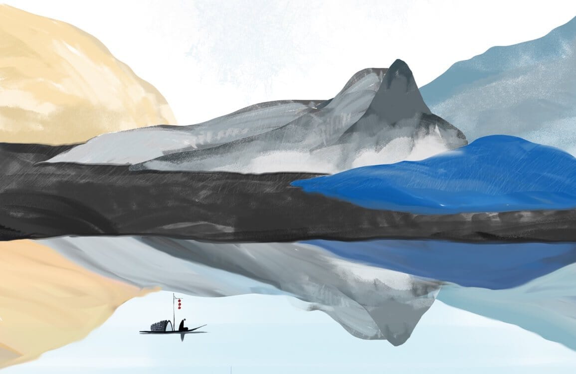 Immerse your living space in the serene elegance of the Mountain River Wallpaper Mural. This artful depiction captures nature's majesty with sweeping mountain ranges reflected in tranquil waters. The mural's sophisticated palette of muted neutrals and rich blues evokes a sense of expansive calm, making it an exquisite canvas for modern or classic interiors.