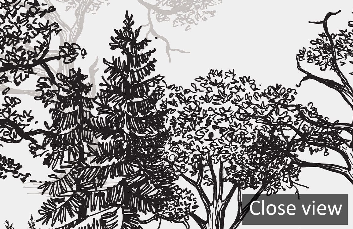 The Mountains & Trees Sketch Wallpaper Mural displays a unique sketch pattern for your walls. This large-scale design is composed of mountains and trees drawn in soft grey tones that can be used to create a dramatic atmosphere in your home. The contemporary yet traditional layout is guaranteed to make a relaxing and creative ambiance in any house. Whether you choose to mount this mural as-is or use it as inspiration for an original painting project, it's sure to make a big impact in your space!