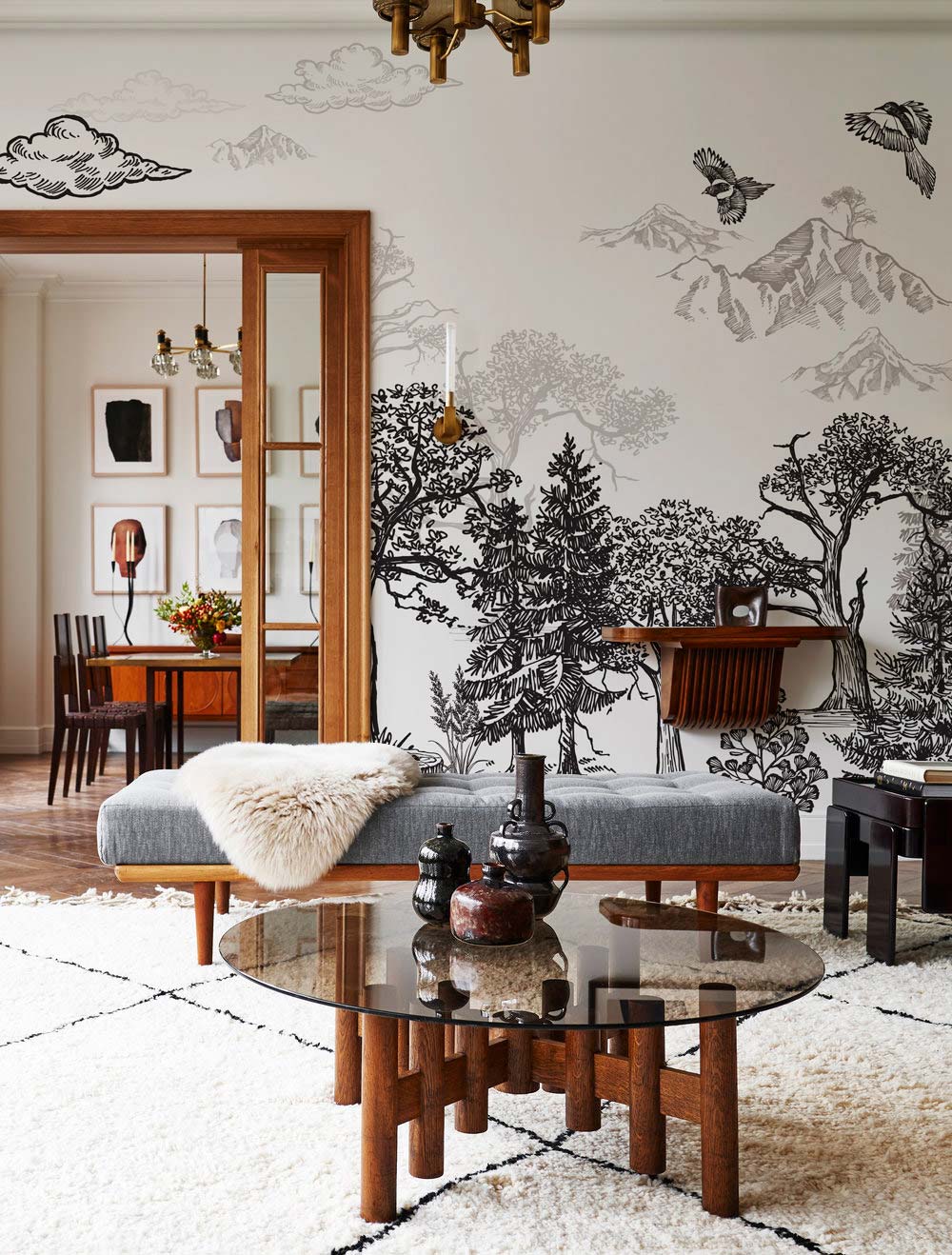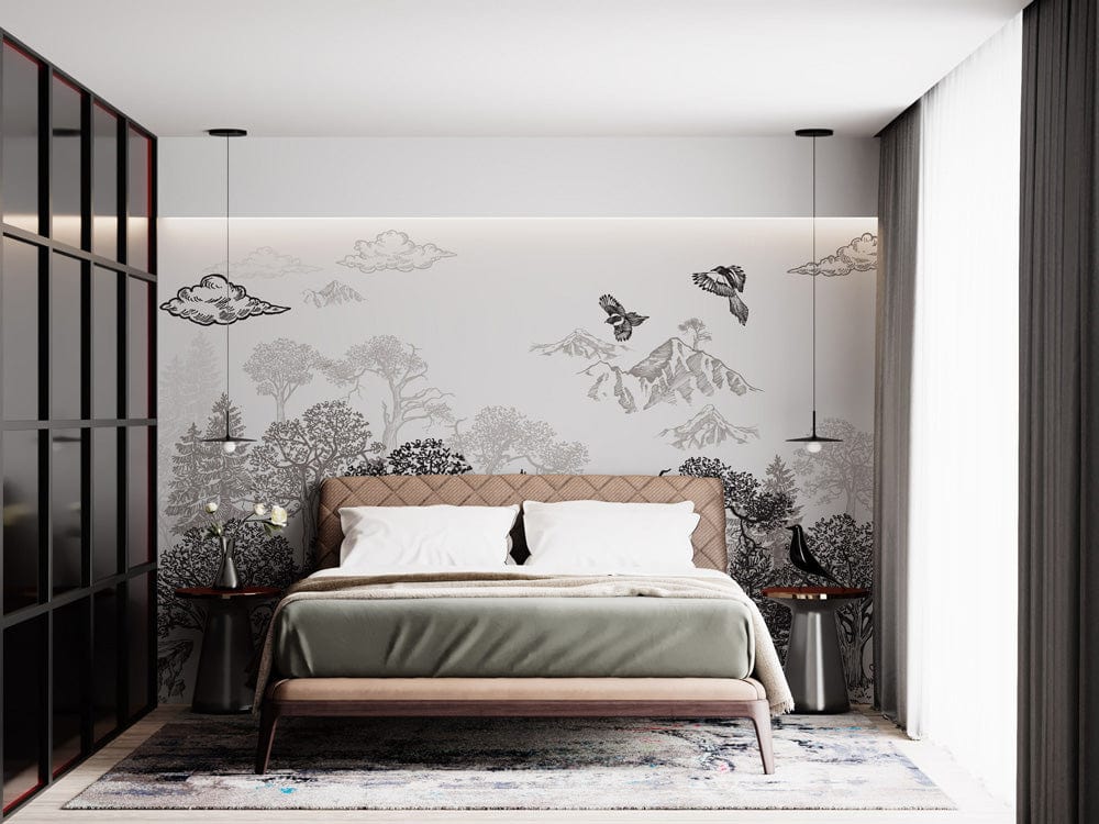 Introducing a sophisticated synthesis of nature and art, the Mountains & Trees Sketch Wallpaper Mural embodies exquisite detail with its intricate linework and serene imagery. The mural's fine sketches of towering mountains and gracefully arching trees are beautifully rendered, bringing a touch of the wilderness into your space. Its timeless allure and captivating depth make it a perfect addition to diverse interiors, from traditional to contemporary settings.