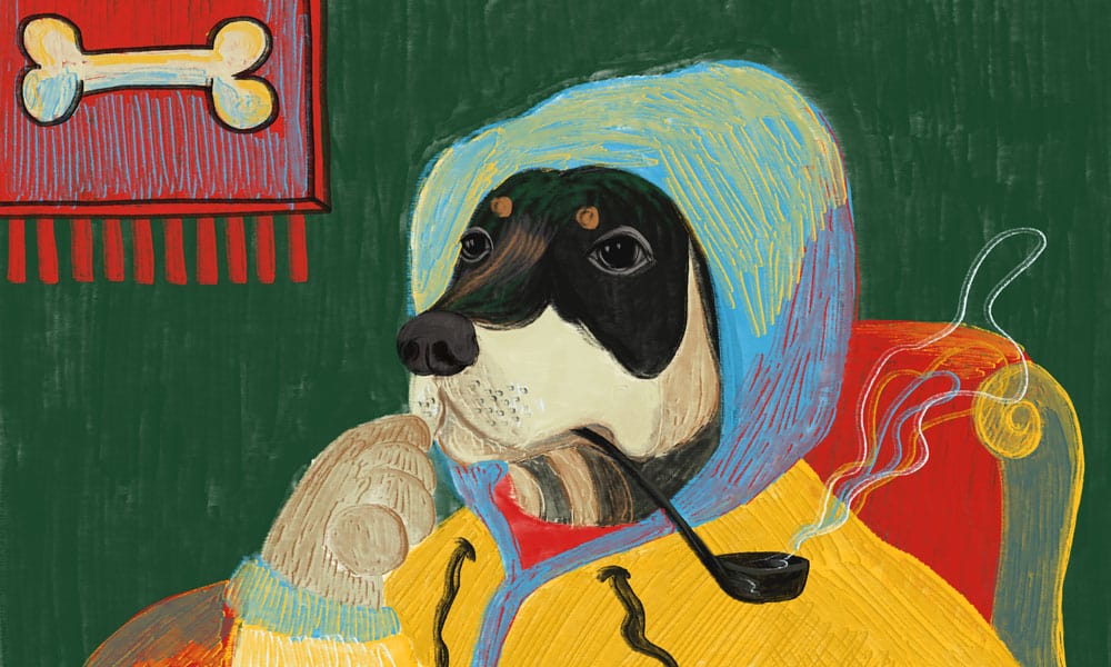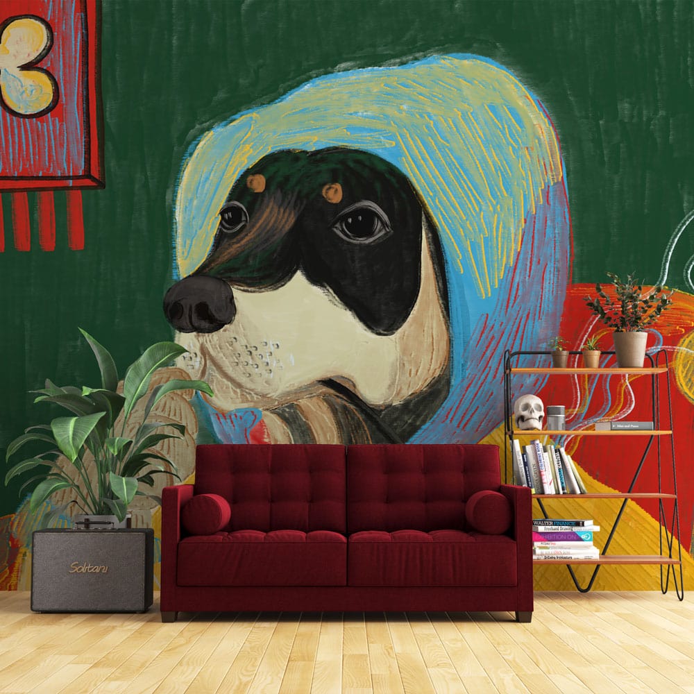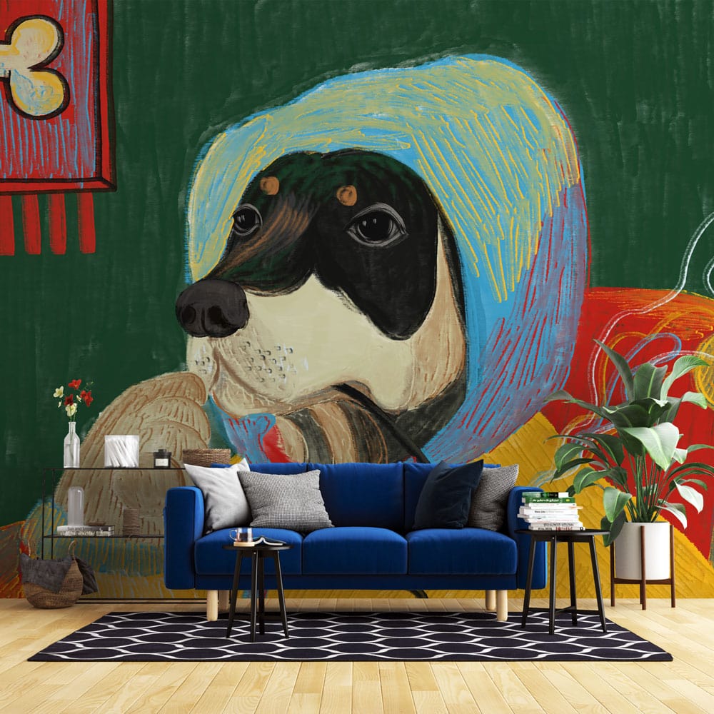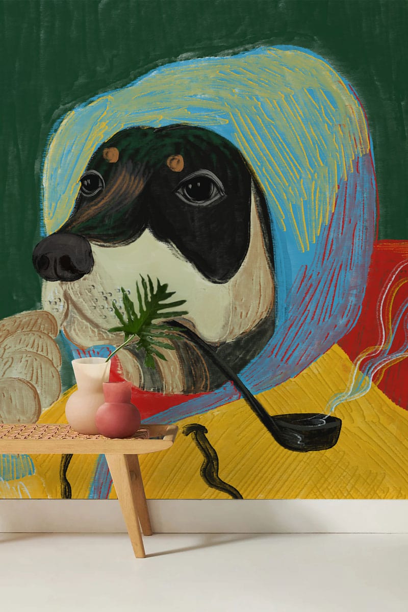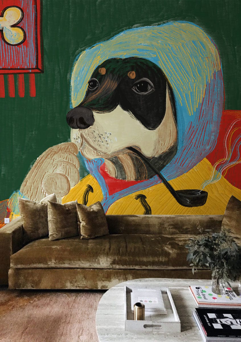 The Mr Smoking Dog Wallpaper Mural elegantly fuses whimsical charm with sophisticated artistry. Featuring a poised canine clad in a retro ensemble, this mural brings a unique touch of character and flair to any space. With its detailed textures and thoughtful brushwork, the wallpaper creates a warm and inviting ambience, making it an ideal focal point for both classic and contemporary interiors.