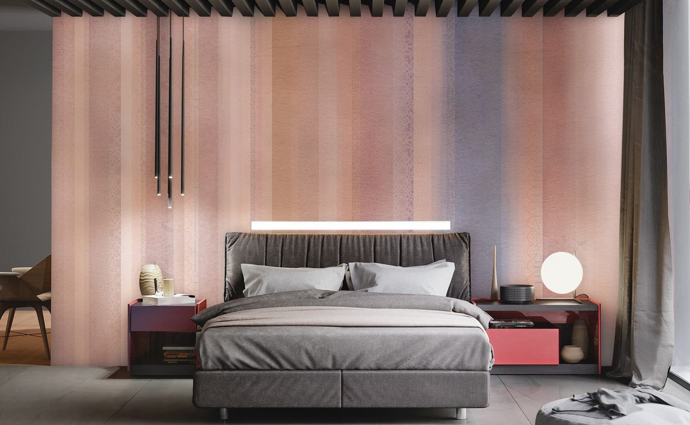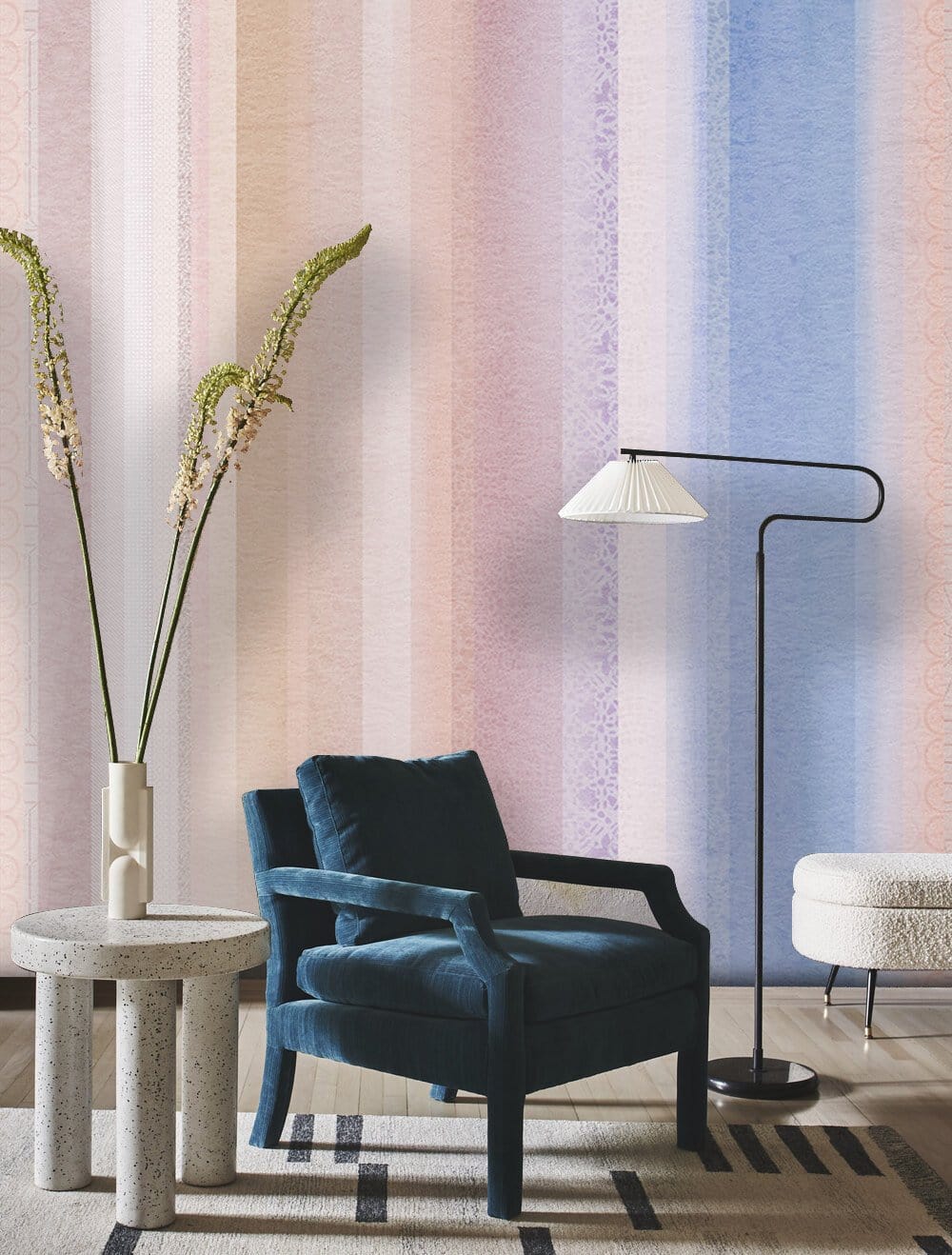 Update your wall with colours with this stunning ombre stripe wallpaper. Watch these amazing colours of white, beige, pink, purple and blue merge into each other in slow gradients and create utter magic on your walls and your interiors. Perfect wallpaper mural to decorate your bedroom, living room, bathroom and dining room.