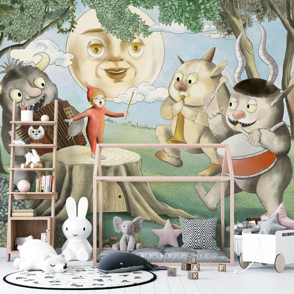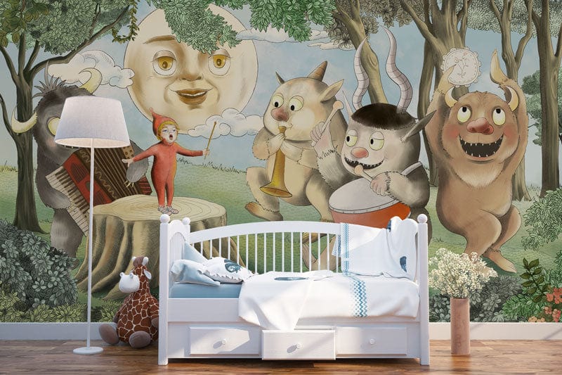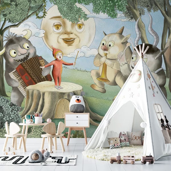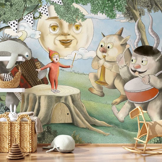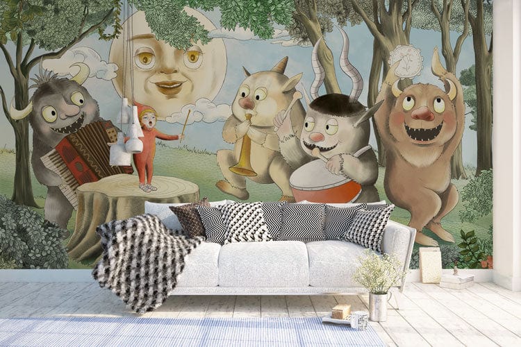 Dive into a whimsical world with the Musician Monsters Wallpaper Mural, where delightful creatures come alive in a serene forest setting. Each character exudes charm, offering a playful symphony of visual storytelling that's both enchanting and sophisticated. The mural's intricate artistry and detailed textures create a captivating atmosphere, perfect for infusing spaces with a sense of wonder and joy. Ideal for eclectic interiors, this design draws you into its magical narrative, seamlessly fitting into both contemporary and classic settings.