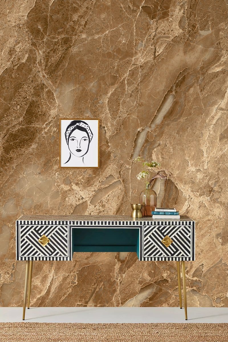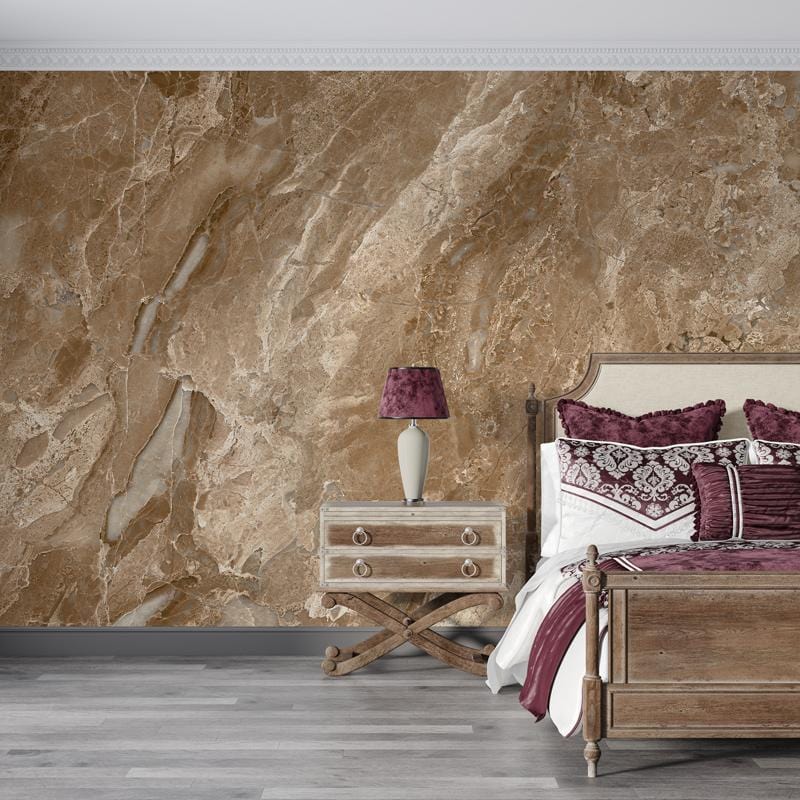 Brown colour stone is cut with small cracks to create a visually stunning slab of calacatta marble. Elegant and confident, this wall mural captures the variety and complexity of natural stone. Wall mural available in both removable peel-and-stick and permanent wallpapers. Printed with child-safe inks.