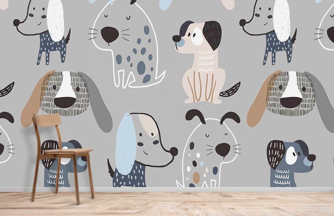 If you or your kids love dogs, then this lovely dog wallpaper mural will be a perfect choice for your interiors. This adorable bulldog & sausage dog pattern design under soft grey background is suitable for all your bedroom or kids/nursery rooms. Place this doggy wall mural to your wall and enjoy the happiness and joy it brings to you and your children.