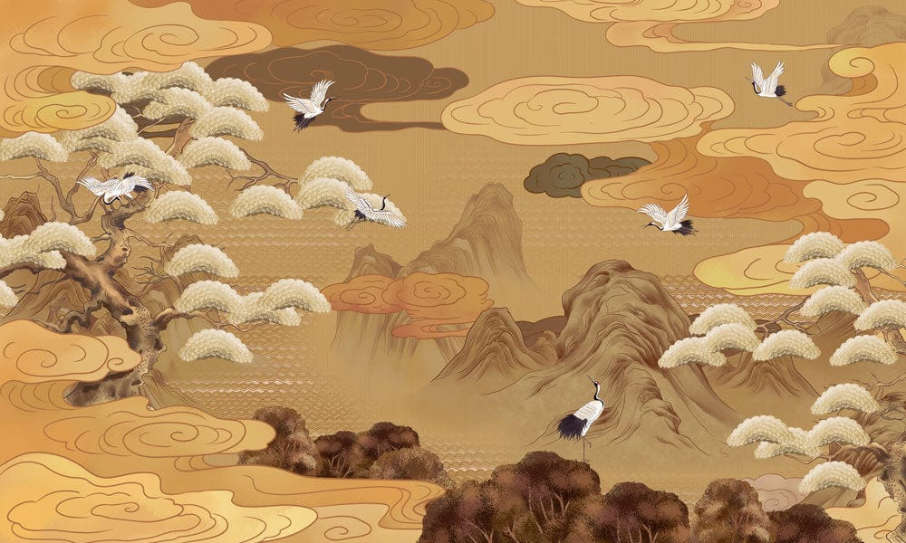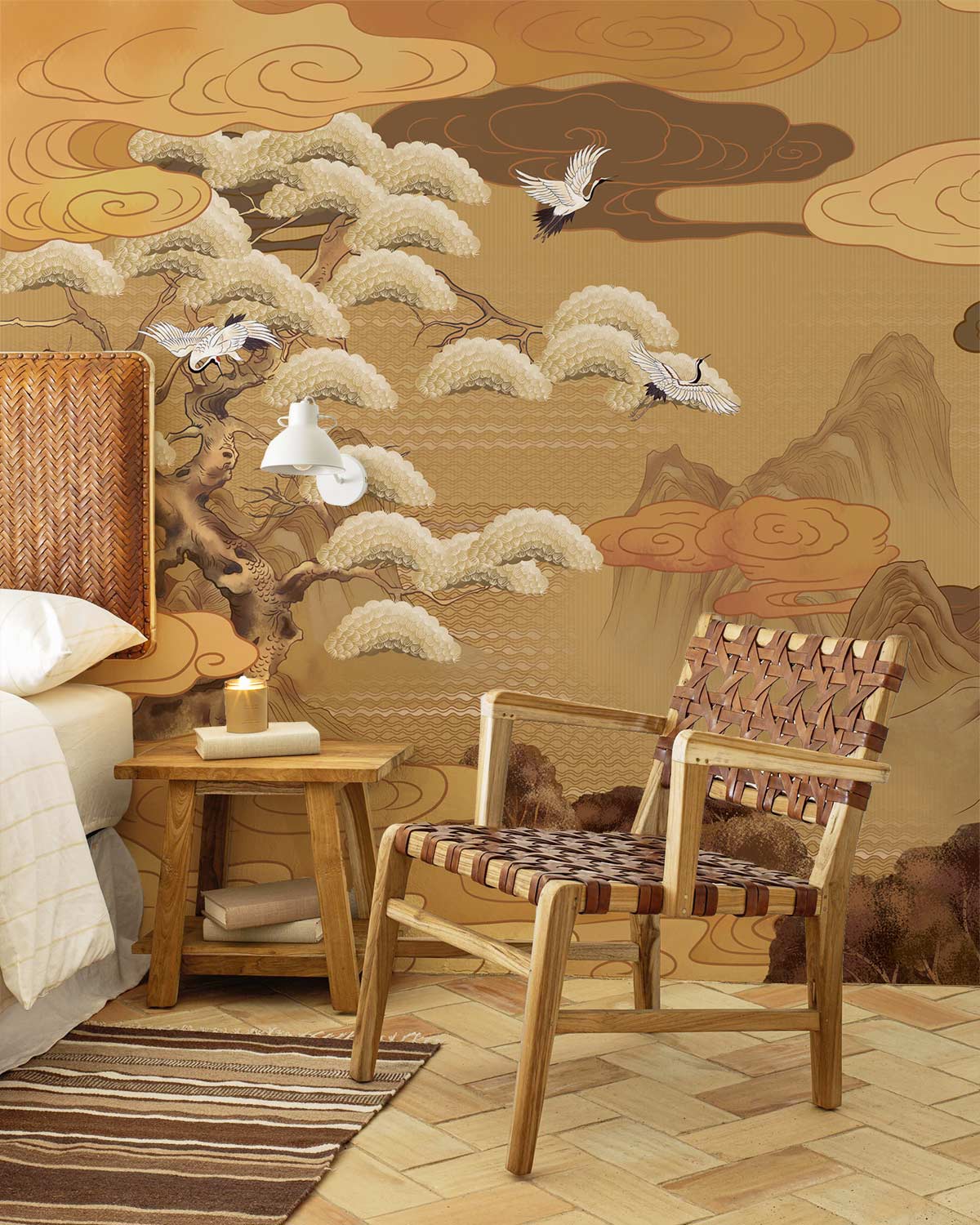 Immerse your surroundings in the serene elegance of the Neutral Conifers Wallpaper Mural. This exquisite design captures the delicate artistry of conifer landscapes, with graceful cranes soaring amidst subtly layered clouds and ancient pines. Its serene earth tones create a sense of tranquillity and depth, seamlessly complementing a variety of interior styles. Ideal for those seeking a connection to nature, this mural invites a timeless sophistication, enveloping any room with a peaceful yet majestic ambience.