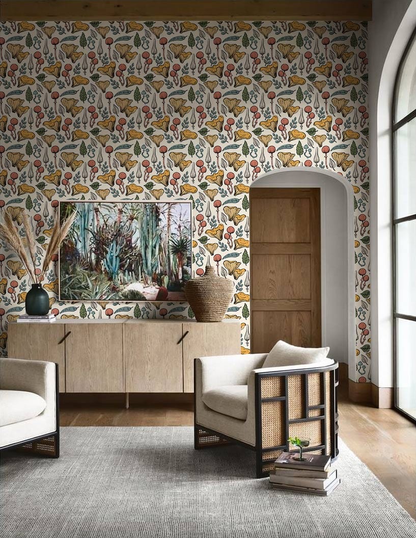 A joyful and vibrant pattern made up of earth tones of mushrooms can be found on this mural wallpaper. The mushrooms are layered into the design to produce a bright and cheerful artwork that is ideal for creating colour on your wall while also including a happy and energetic aspect. This mushroom mural wallpaper is a nature-inspired design excellent for individuals who enjoy the outdoors, adding a bit of flora to your area. This Neutral Mushrooms Wallpaper Mural is printed on both sides for optimal coverage and durability.