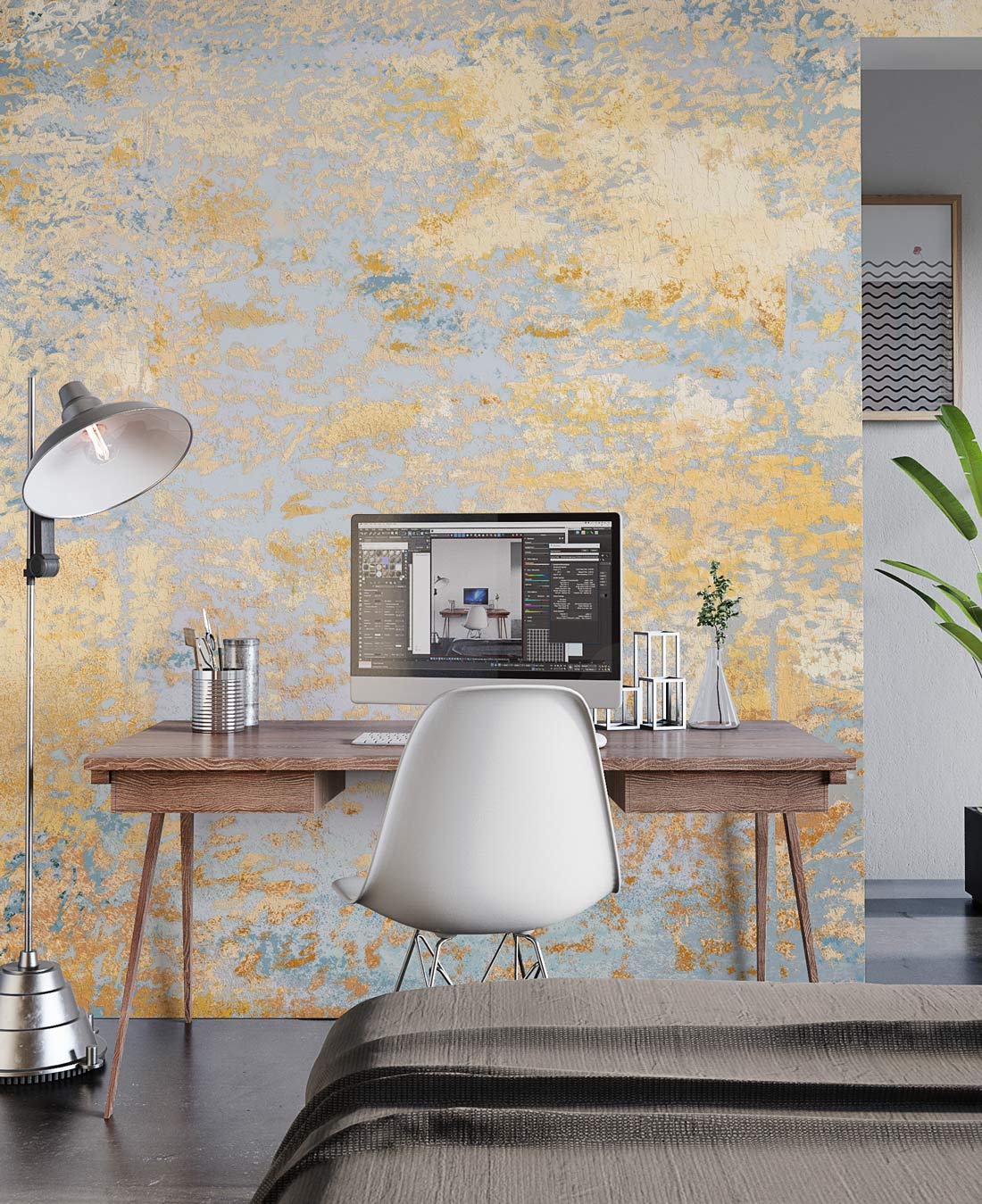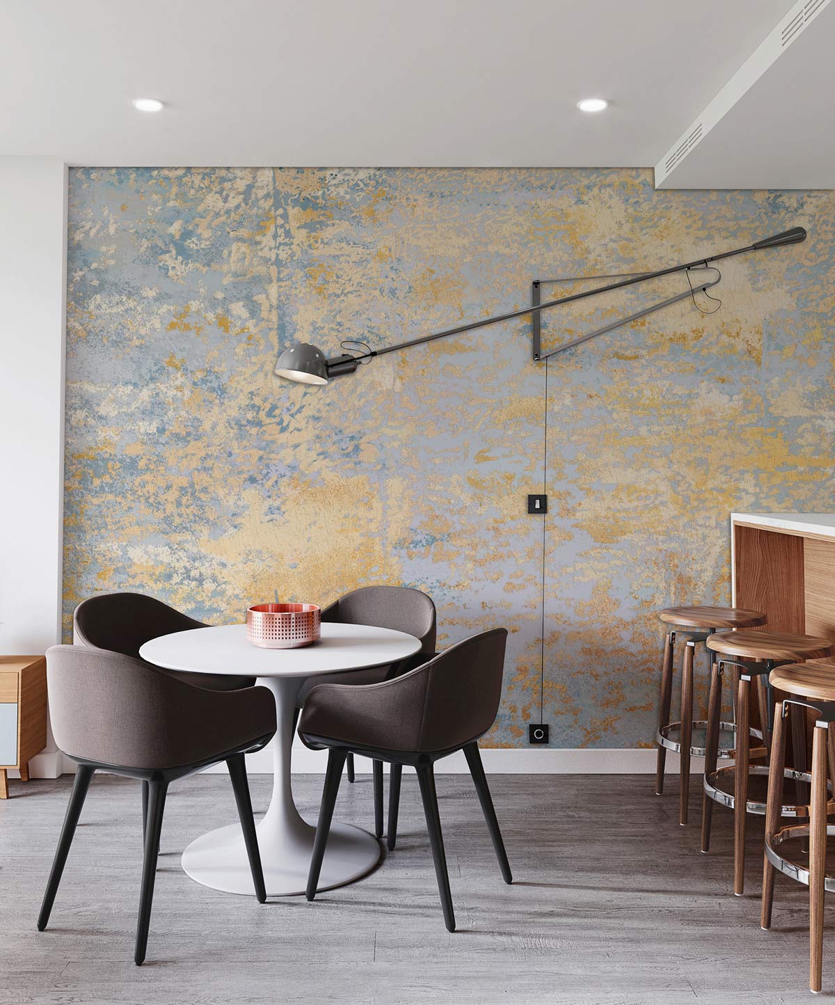 The Noble Wallpaper Mural captures the essence of timeless elegance with its textured interplay of soft blues and warm golden tones. Its intricate patterns evoke a sense of refined artistry, making it an ideal addition to spaces that require a touch of sophistication. This mural seamlessly integrates into both classic and contemporary interiors, creating an ambient backdrop that is as welcoming as it is striking.