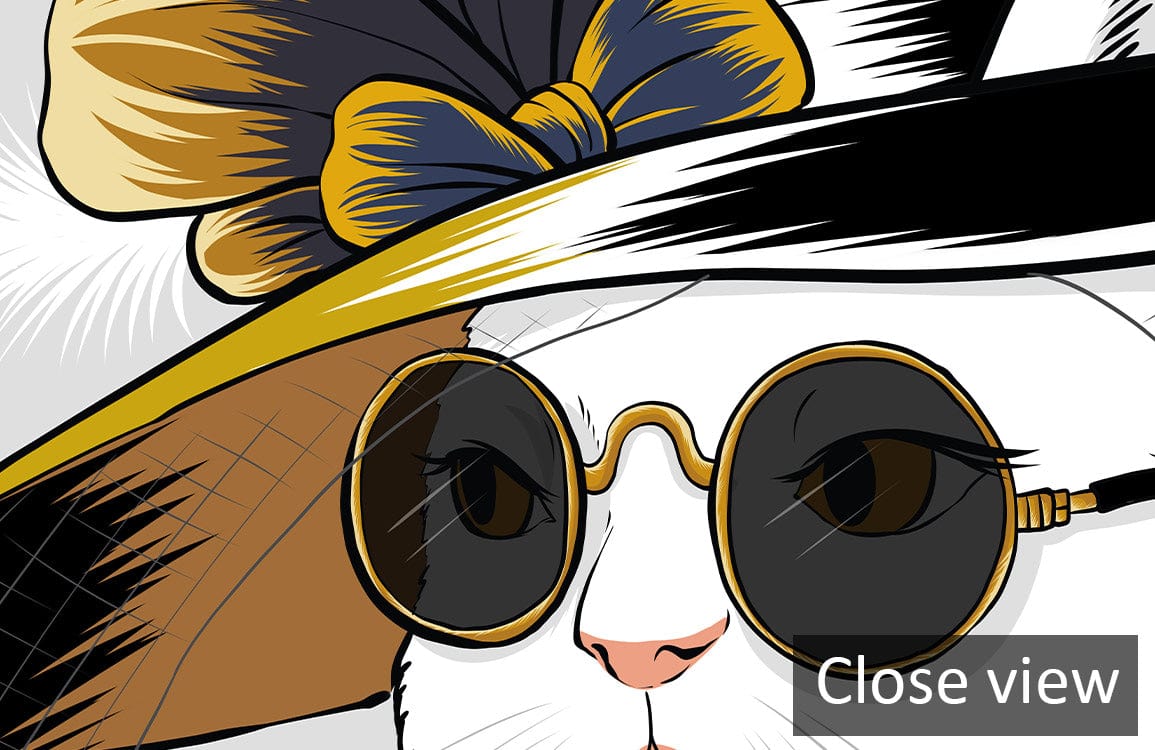 Introducing the Noble Lady Cat Wallpaper Mural, a whimsical and refined design capturing the charm of feline elegance. With meticulous artistry, the mural features a poised white cat adorned in a luxurious hat and chic pearls, exuding old-world sophistication. Perfectly suited for spaces that crave a touch of humour blended with class. Ideal for creating a conversation piece in any room.