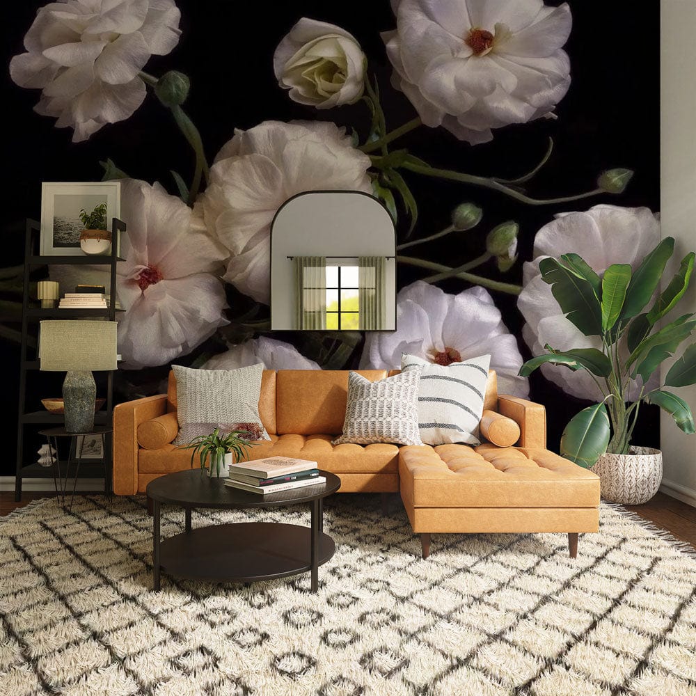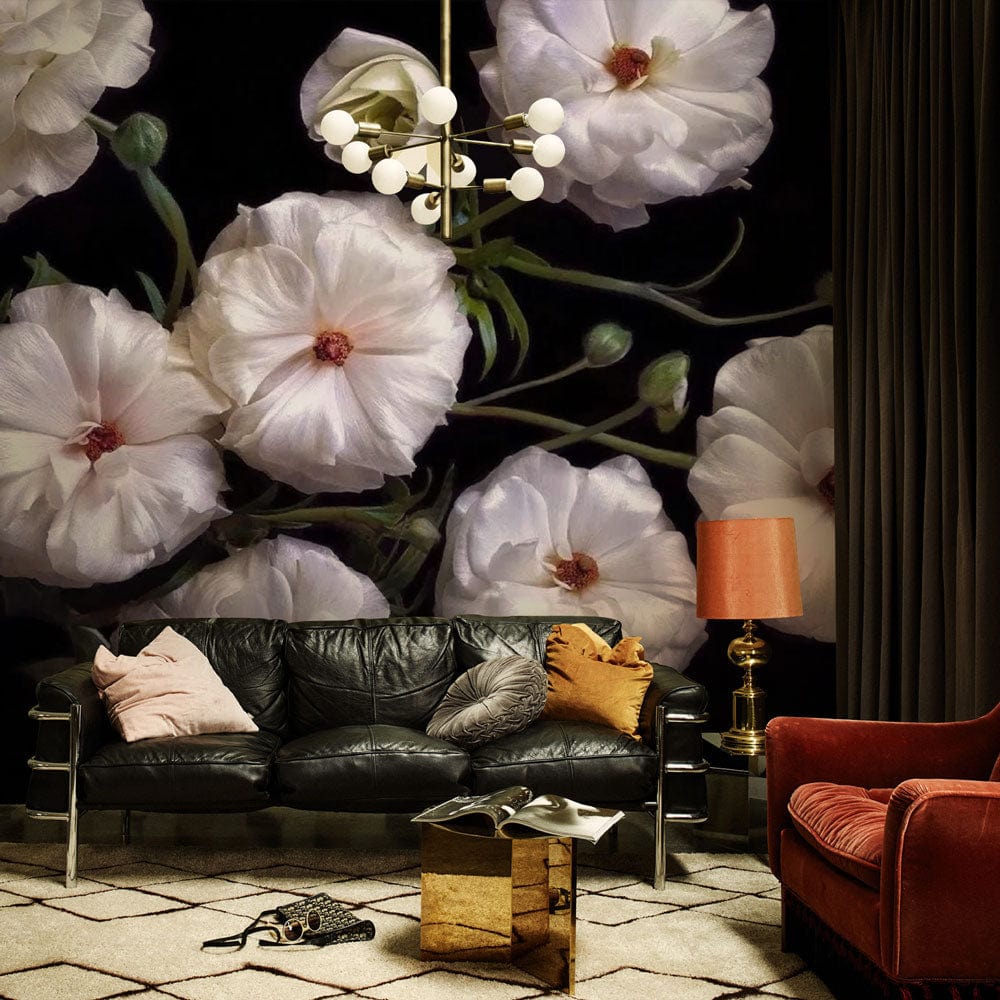 The Noblessa White Yarrow Wallpaper Mural captures the delicate allure of bountiful yarrow blossoms set against a dark backdrop, evoking a sense of serene sophistication. Its elegant floral design, with intricate detailing and ethereal textures, offers a timeless aesthetic that gracefully suits both contemporary and classic interiors.