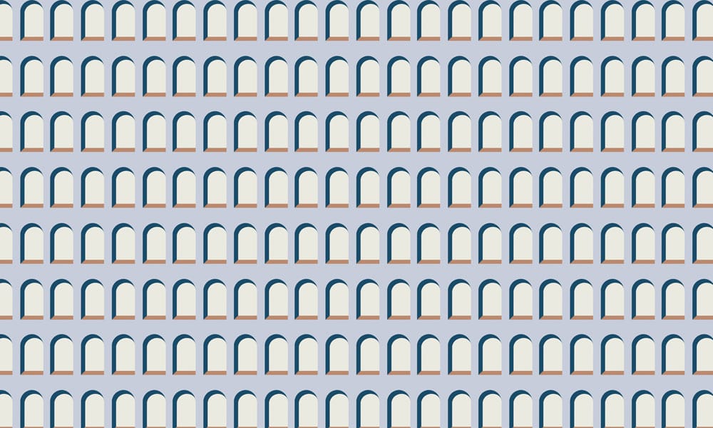 Select this stylish Nordic Arch Wallpaper Mural to add some life to your boring walls! With its arched window and geometric patterns in blue and pink on an off-white background, this geometric wallpaper will give your walls an appealing, modern atmosphere. The design emphasizes the incredible hand-drawn painting design created by our artist and is based on the traditional nordic arch shape. It will go well with any other colour scheme and give your house, office, and other interior spaces a unique look and feel.