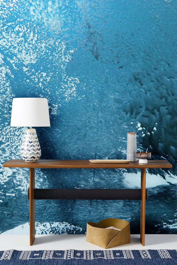 Immerse your space in the serene beauty of the Ocean Effect Paint Wall Wallpaper Mural. Its abstract design captures the fluid motion of ocean waves, with swirling textures evoking both calm and intrigue. A sophisticated blend of deep blues and subtle aquamarine hues provides a calming backdrop, conjuring the timeless elegance of coastal vistas. Perfectly suited for adding a touch of artistic flair to any interior setting, this mural serves as a captivating focal point that harmonises with modern, minimalist, and even vintage styles.