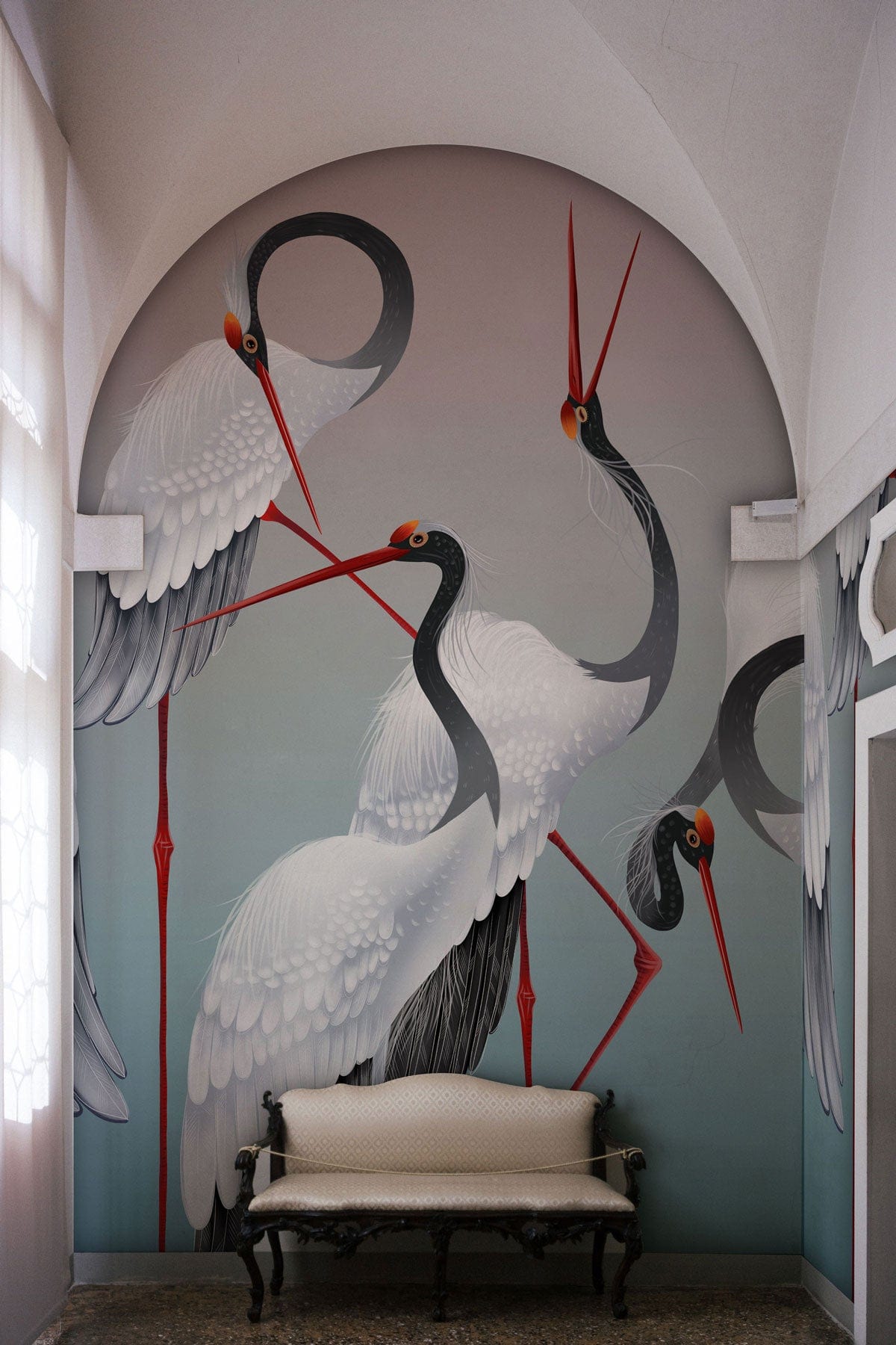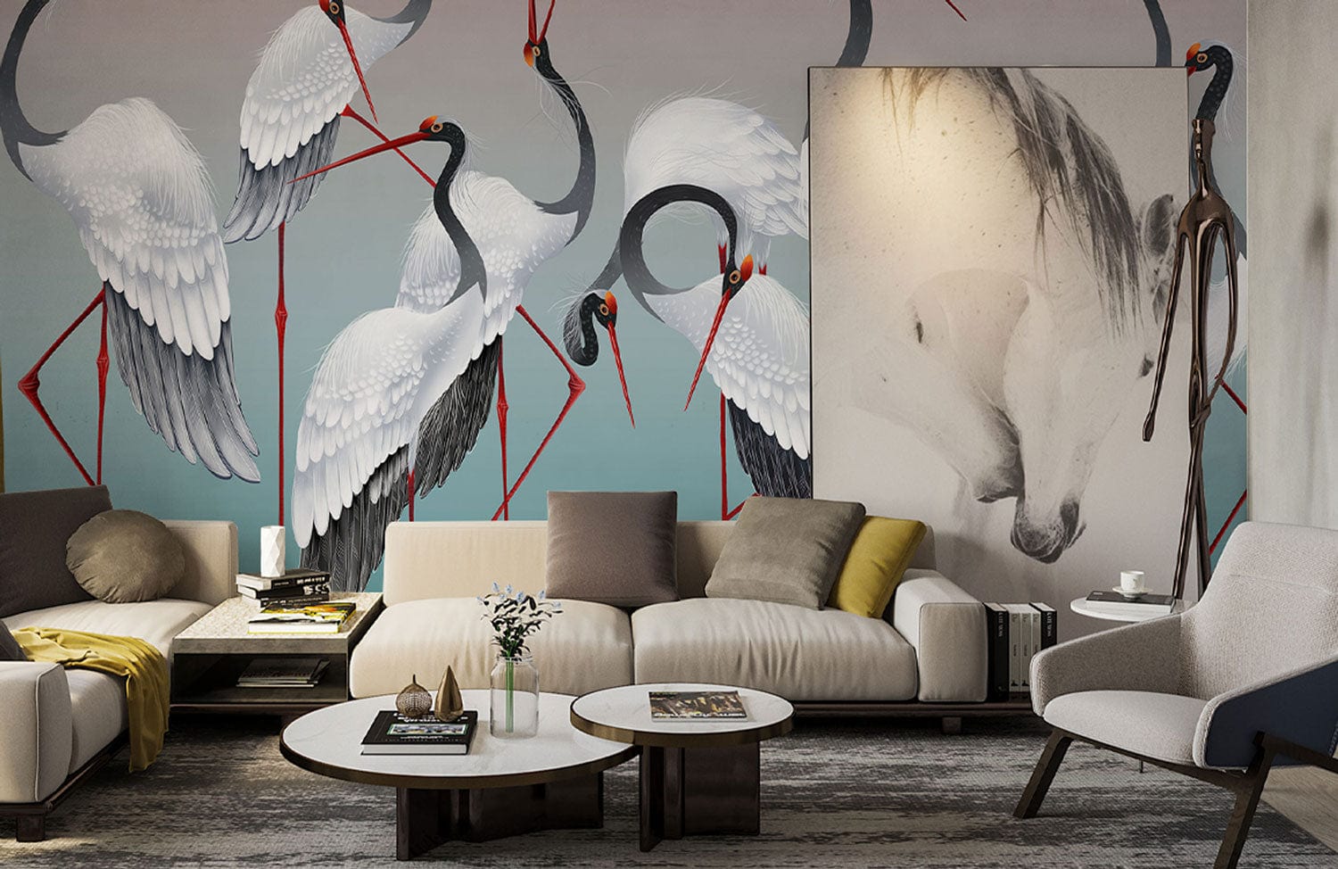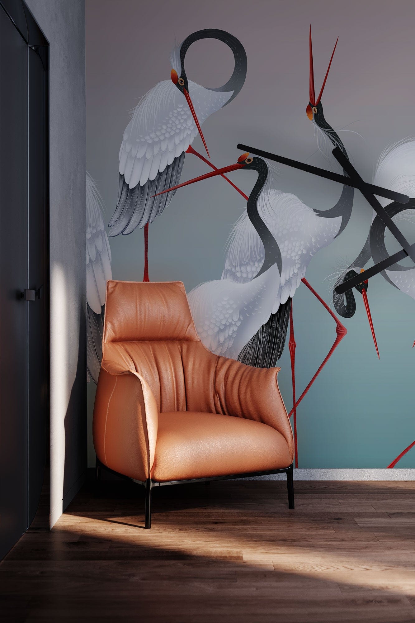 Elevate your space with the Ombre Background Crane Wallpaper Mural, featuring a mesmerising blend of elegant cranes set against a serene gradient backdrop. The exquisite detailing of the cranes captures their graceful poise, while the ombre shades evoke a tranquil ambience. Perfect for adding a touch of sophistication and artistic charm to any room.