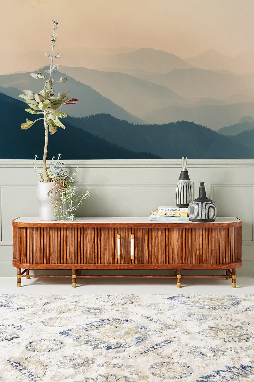 In a uniquely beautiful pattern that is both serene and inspiring, this Ombre Continuous Mountains Wallpaper Mural features mountains that fade from pink to purple as they reach towards the horizon. The mural is designed with a light colour palette of subtle pinks shades on the peaks to create a calming space while bringing some life to your walls. Paired with a neutral wall colour, this wallpaper mural makes an excellent background for most interiors.