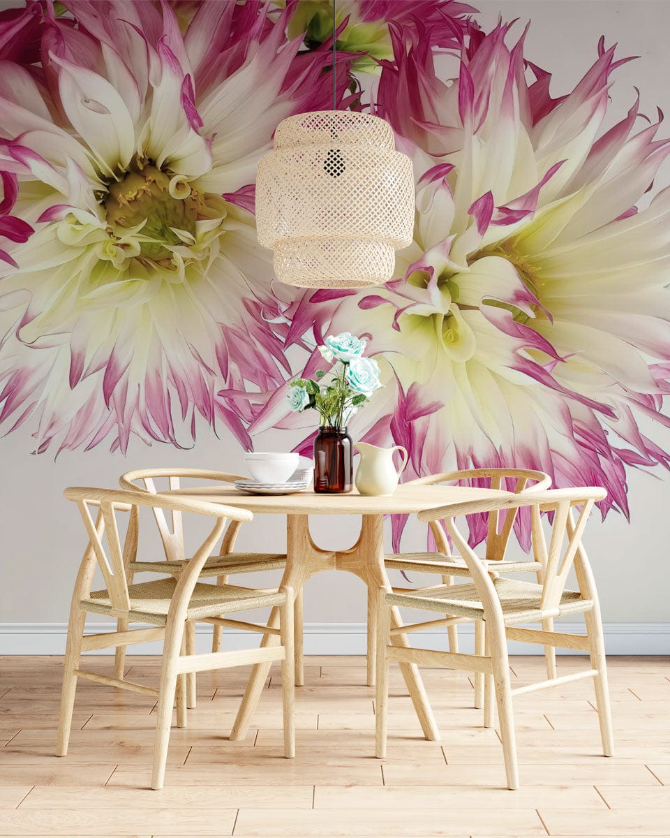 The Ombre Dahlia Wallpaper Mural introduces a graceful blend of artistry with its exquisite display of dahlias in soft pinks and whites. This mural brings a lively elegance to any space with its intricate petal detailing and gentle gradient flow, making it a poised choice for both modern and classic interiors.
