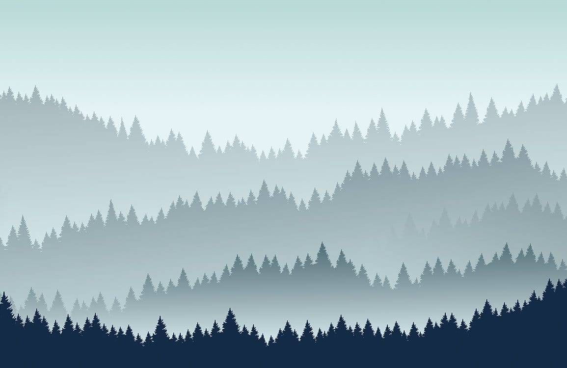 Your rooms can be beautifully transformed into serene sanctuary surrounded by nature with out Ombre Foggy Forest Wallpaper Mural. This dreamy wall mural depicts a greyish-green forest of trees veiled in a hazy soft mist that creates a peaceful atmosphere, allowing you to be truly calm in your home.