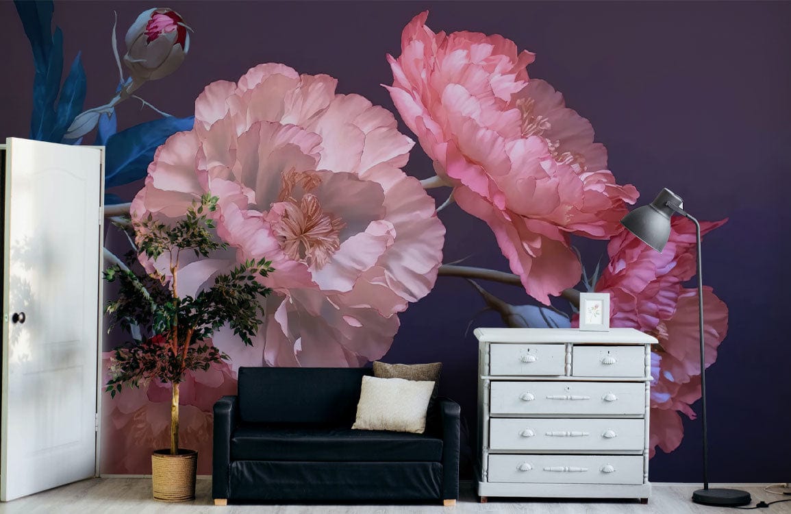 The Ombre Pink Peonies Wallpaper Mural is a stunning visual symphony of delicate blossoms, offering an effortless flow of soft pink hues against a deep, twilight backdrop. This elegant arrangement of flowers brings a touch of nature's art into any room, creating an atmosphere of tranquility and sophistication. Perfect for adding a timeless allure to interior spaces, this mural intertwines artistry with serene elegance, making it an ideal choice for any discerning home decorator.