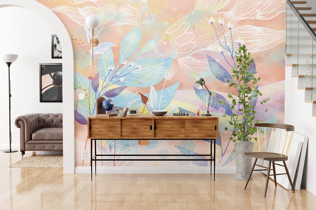 Step into a serene utopia with the Orange Dreamland Wallpaper Mural. This captivating mural features ethereal floral designs in a harmonious blend of soft pastels and subtle lines, creating a dream-like atmosphere. Its artful composition and delicate textures make it an enchanting focal point for any sophisticated space, evoking a sense of wonder and tranquillity.