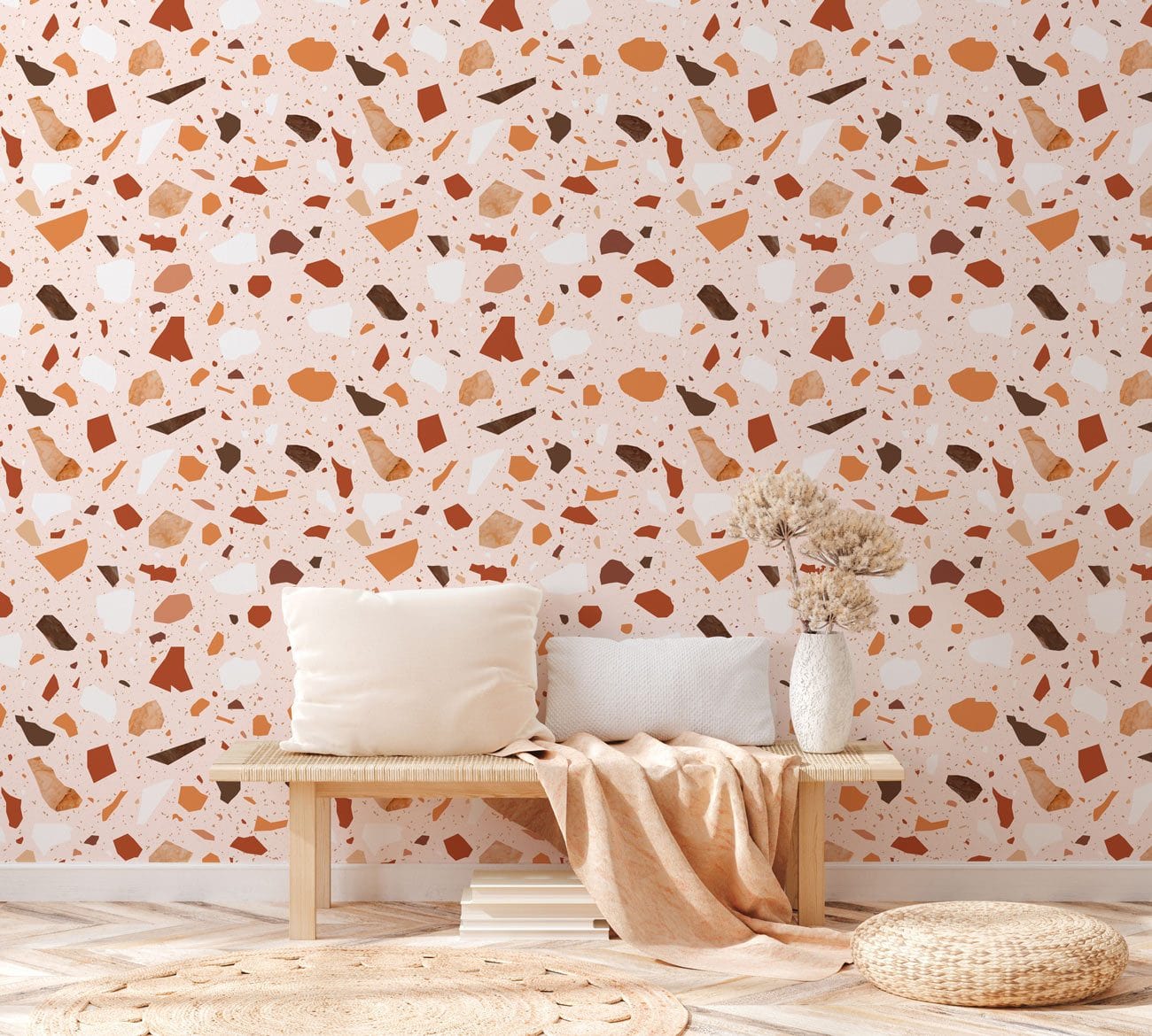 The Terrazzo Slice Wallpaper Mural brings a sophisticated blend of artistry and elegance into any space. Embracing a classic terrazzo pattern, this mural showcases a harmonious mix of warm earthy tones and nuanced textures. Ideal for infusing character into a variety of interiors, it offers a stylish backdrop that complements both modern and vintage aesthetics.