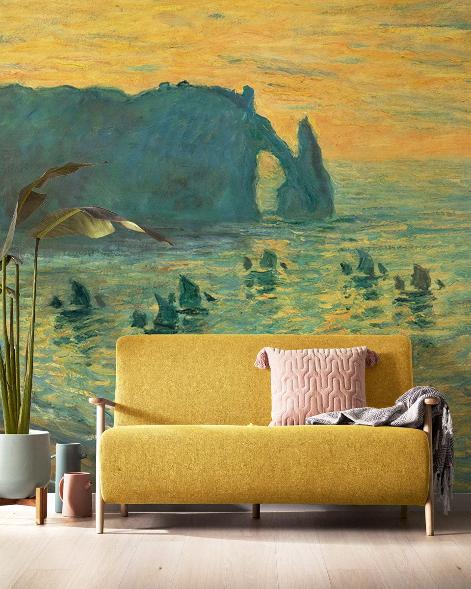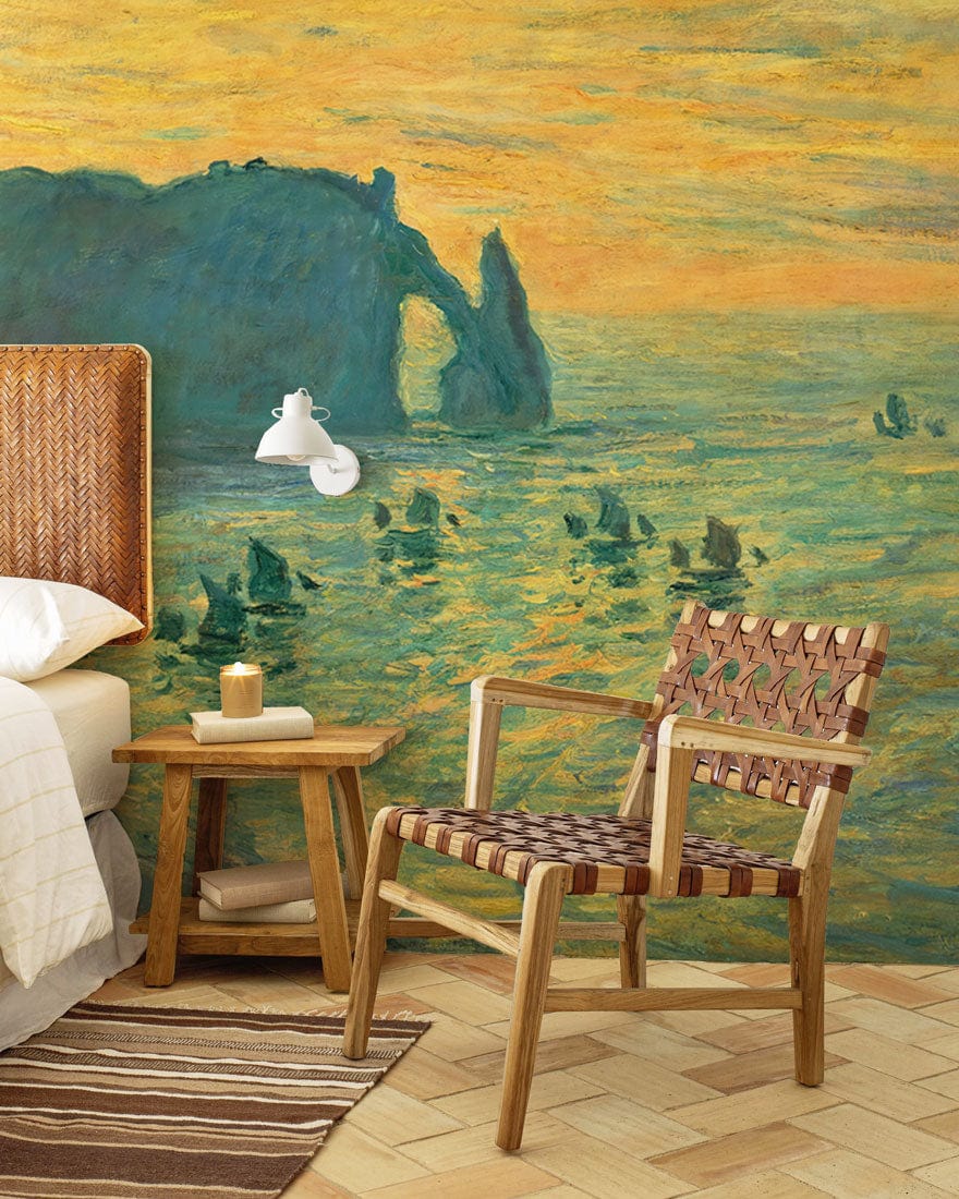 Immerse your space in the tranquil elegance of the Overlooking Ocean Wallpaper Mural. This masterpiece captures the serene interplay of sea and sky, with gentle waves reflecting the soft glow of a sunlit horizon. Its impressionistic design evokes a sense of calm and sophistication, perfect for creating a serene ambiance in modern, vintage, or coastal interiors.