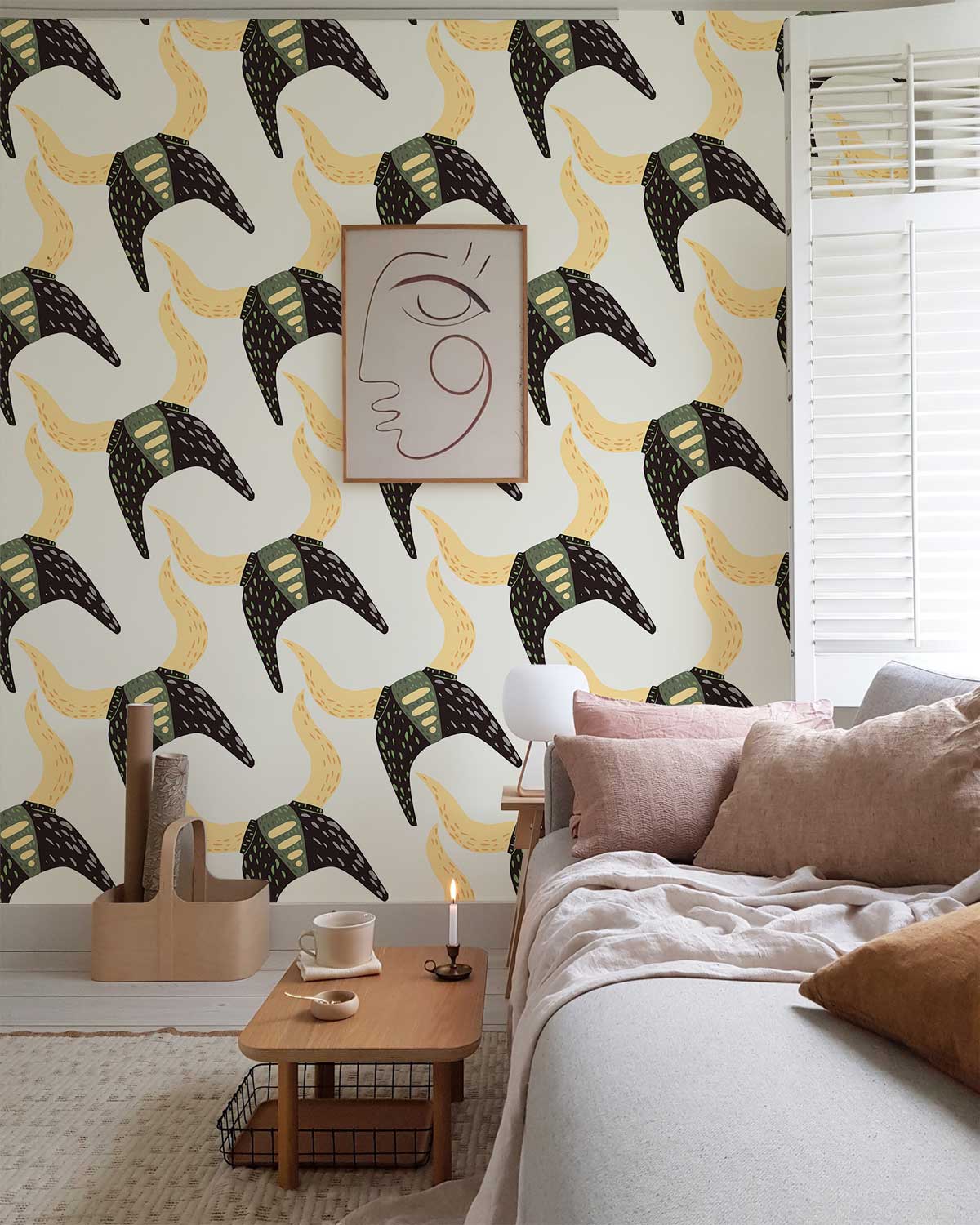 Immerse your space in a tapestry of artistic elegance with the Ox-horned Helmet Wallpaper Mural. This design marries abstract shapes with organic textures, creating a captivating pattern that speaks to both modern and vintage sensibilities. The subtle interplay of earthy hues against a soft backdrop exudes an inviting ambience, making it a perfect fit for discerning interiors.