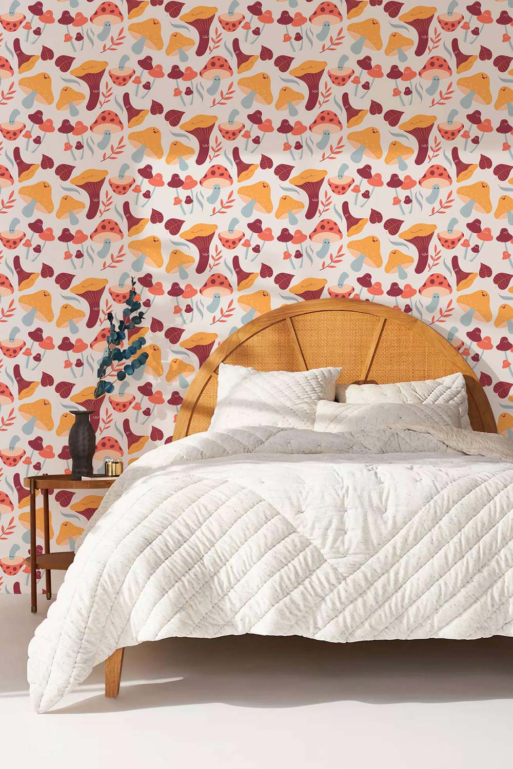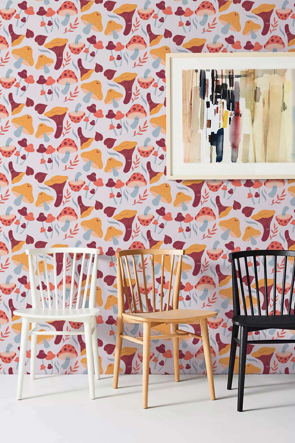 Love mushrooms as much as we do? Then you will love this Oyster Mushrooms mural wallpaper. Inspired by the forest and with a rich colour palette, this mural is the perfect decoration for any living space. This mushroom wallpaper has a striking and unique interior pattern that can bring some excitement to your home with the colourful oyster mushrooms on the surface. Install yourself, or make it part of your next DIY project while bringing a touch of nature indoors.