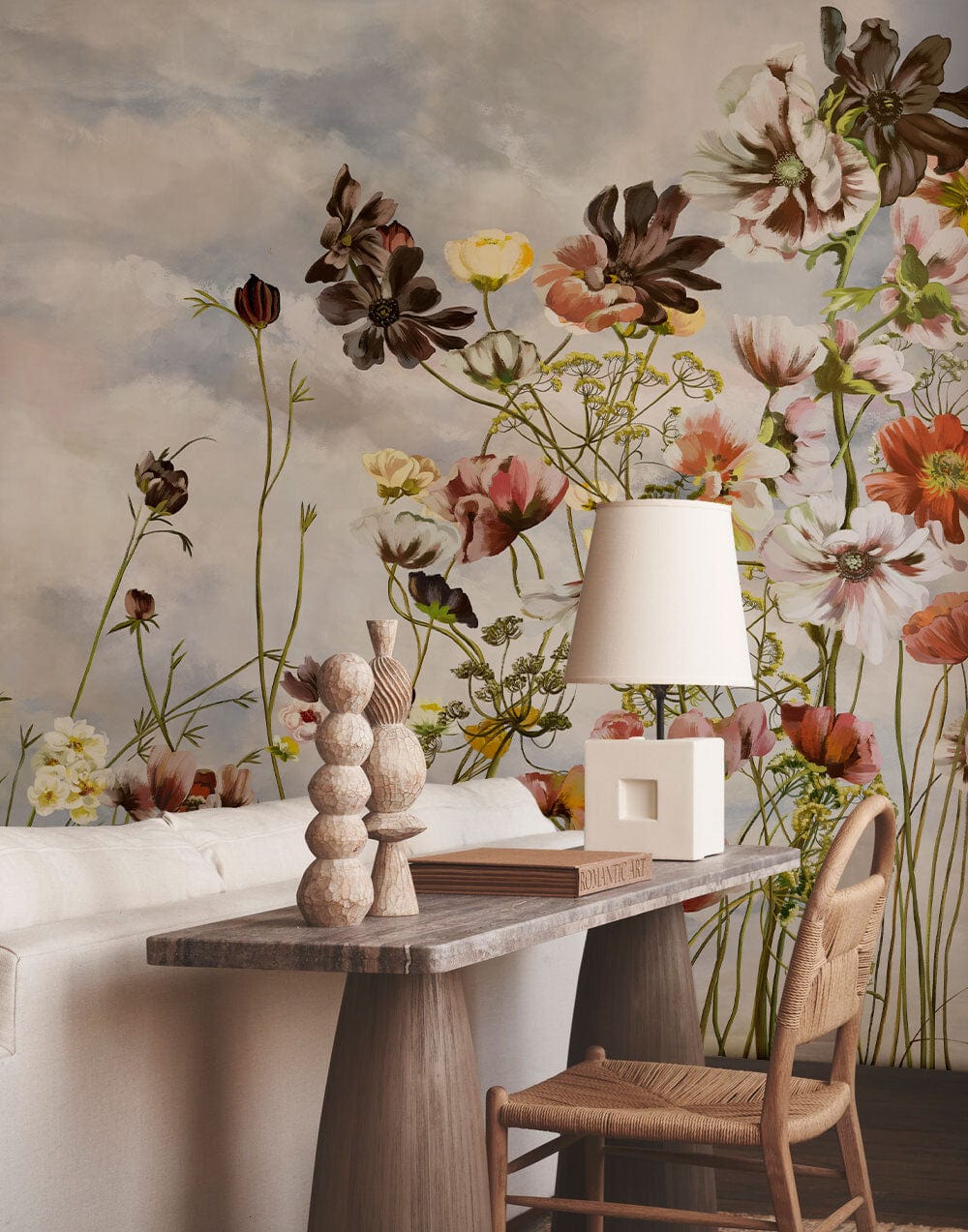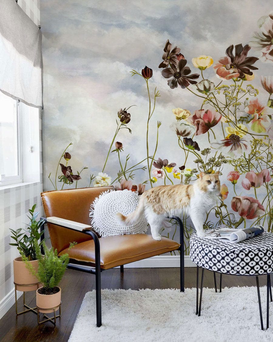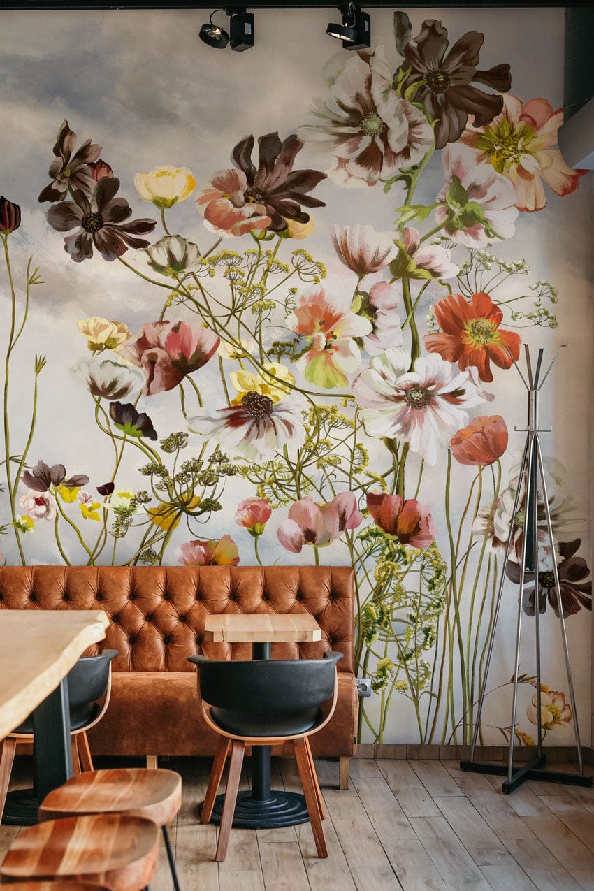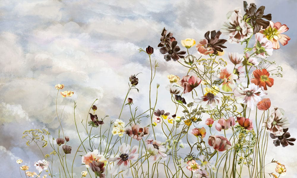 Immerse your space in the timeless charm of the Painting Flower Bouquet Wallpaper Mural. This exquisite design features a delicate array of wildflowers gracefully swaying against a dreamy sky, capturing the essence of nature's untouched beauty. The soft blend of pastel tones and intricate floral patterns create an inviting atmosphere, seamlessly fitting into contemporary or traditional interiors.