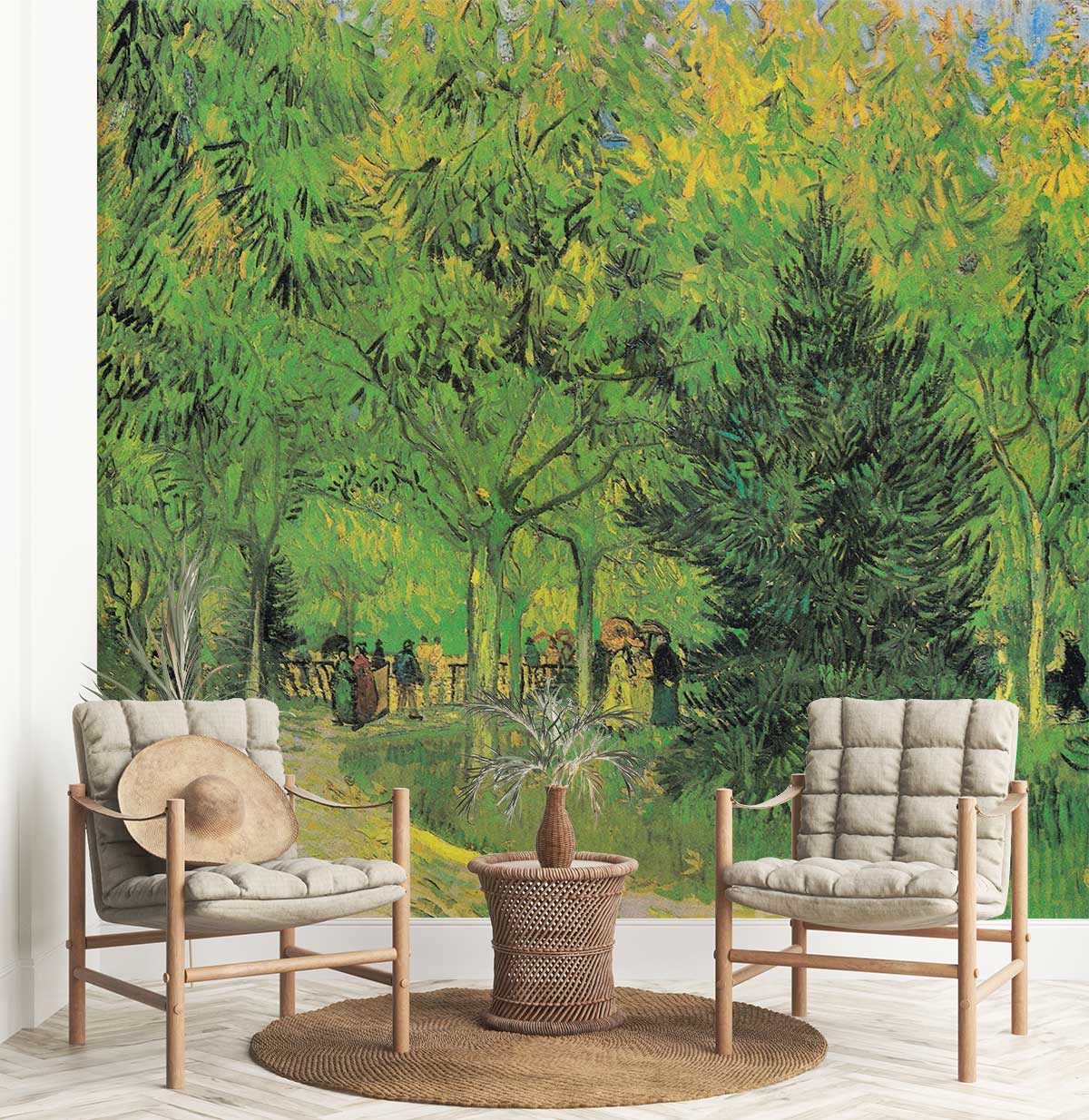 Immerse your space in the serene charm of the Park Path Wallpaper Mural, where vibrant hues and lush greenery create a picturesque escape. The detailed brushstrokes capture a timeless stroll through nature, evoking a sense of peace and tranquility. Perfectly suited for both classic and modern interiors, it brings a piece of artistic splendour right into your home.