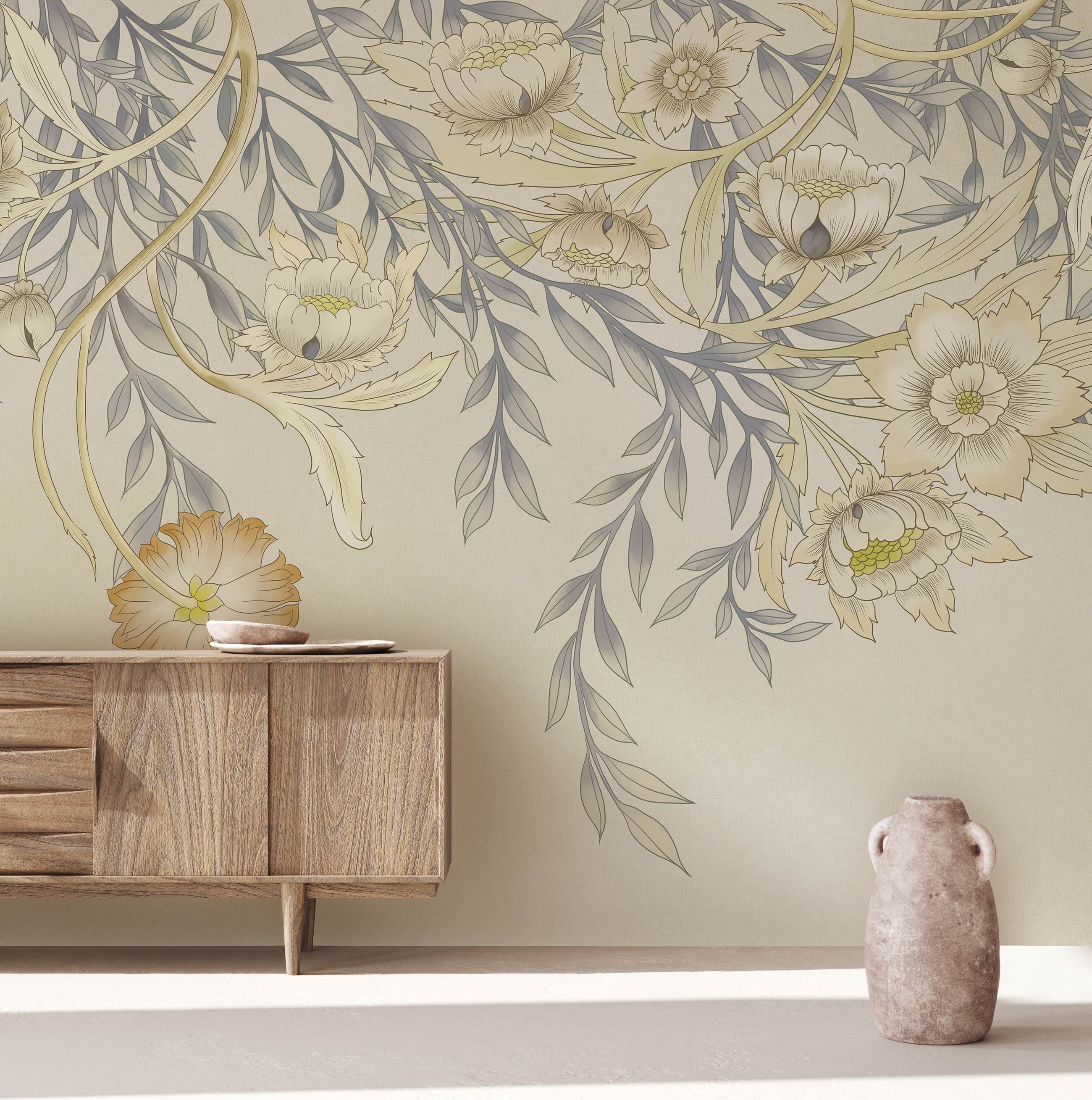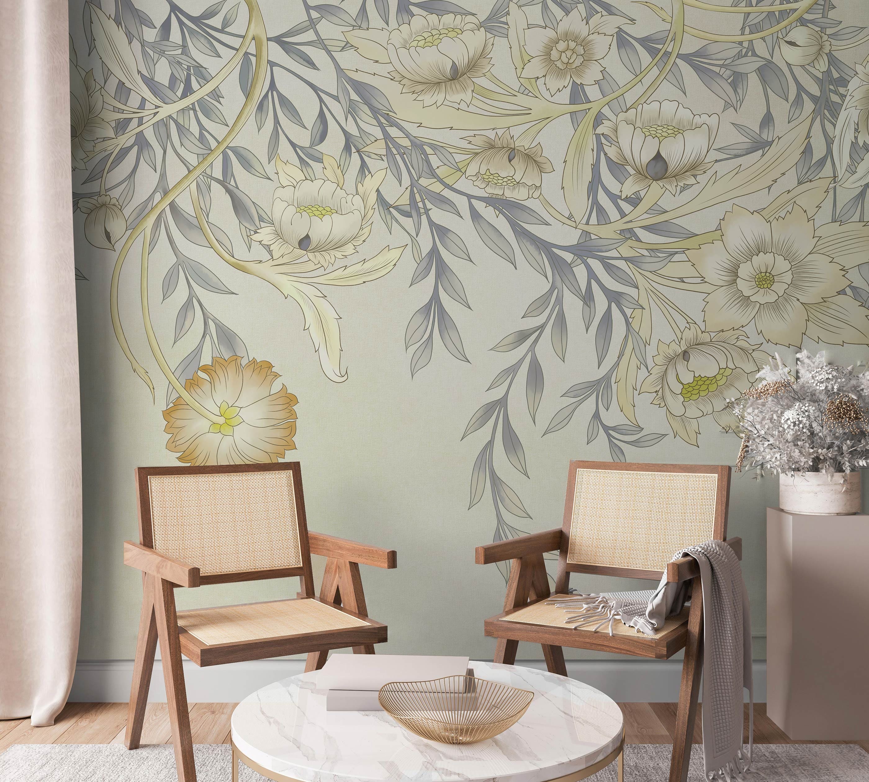 The Pastel Flowers II Wallpaper Mural offers a serene depiction of delicate florals intertwined with graceful branches, imparting a touch of elegance to any space. Its gentle palette combines softly muted tones with intricate detailing, creating a visual symphony that merges art with tranquillity. Ideal for infusing interiors with a refined, timeless ambience, it effortlessly complements both classic and modern décor styles.