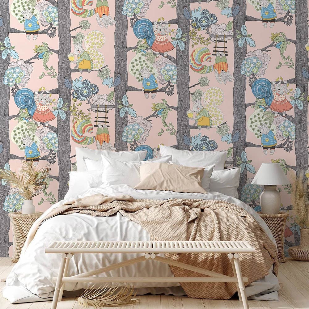 Embrace a whimsical charm with the Pastel Squirrels Game Wallpaper Mural, where playful squirrels dance amidst blooming flora. The delicate pastel hues create a serene tableau, inviting a touch of nature into your space. Perfectly marrying art and elegance, this mural offers a timeless appeal, blending effortlessly with both contemporary and traditional décors.